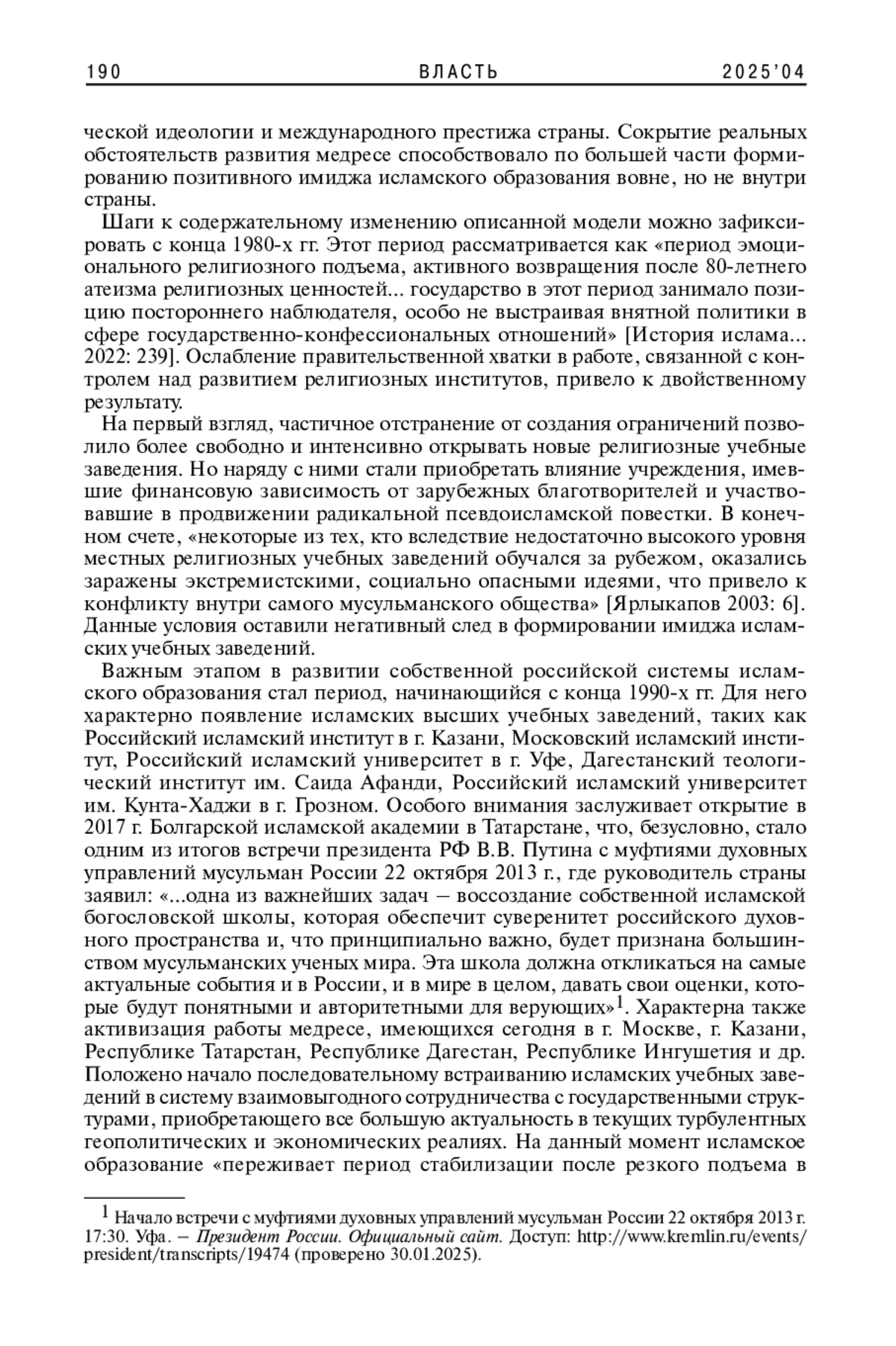4. 	Кашаф Ш. 2016. Модернизация исламского образования как фактор религиозной и национальной безопасности России. - Россия и мусульманский мир. № 6(288). С. 19-36. EDN: WCDUDJ