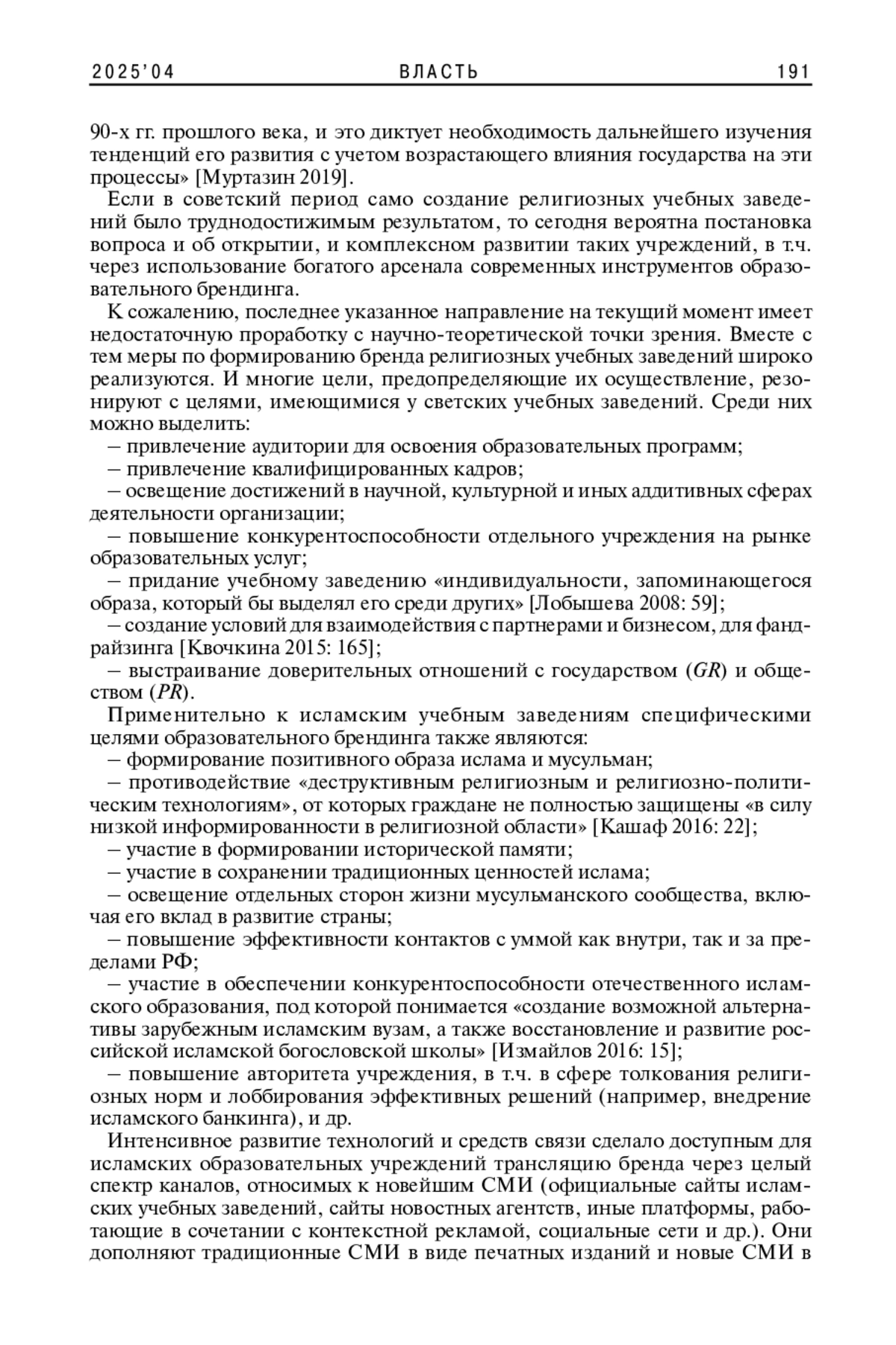 8. 	Муртазин М.Ф. 2019. О системе исламского образования на постсоветском мусульманском пространстве. - Россия и новые государства Евразии. № 2(43). С. 88-102. DOI: 10.20542/2073-4786-2019-2-88-102 EDN: TVILRO