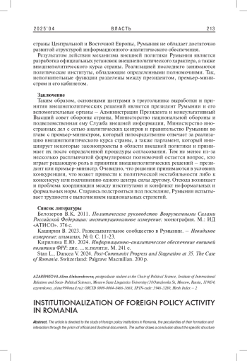 2. 	Каширин В. 2023. Разведывательное сообщество в Румынии. -Невидимое измерение: альманах. № 0. С. 11-23.