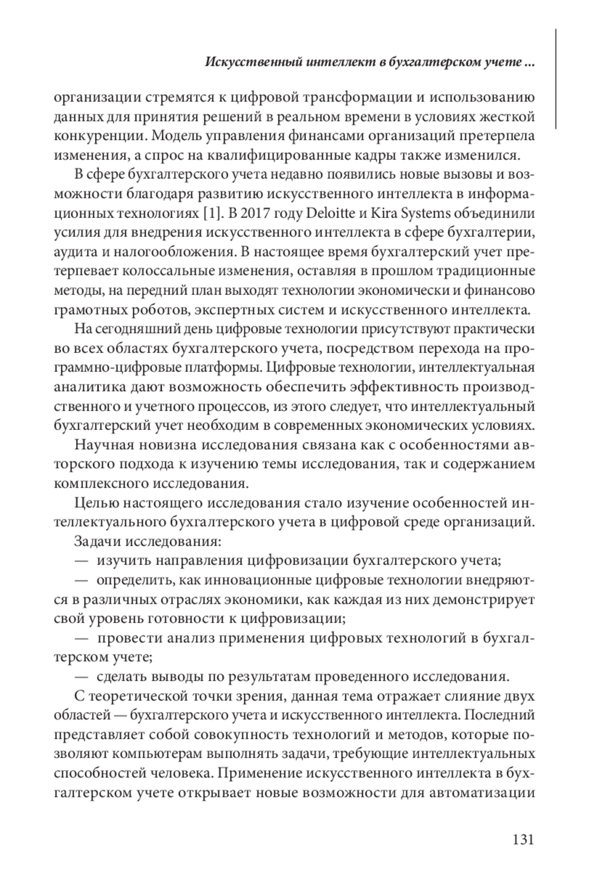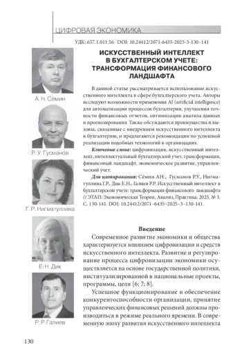 В данной статье рассматривается использование искусственного интеллекта в сфере бухгалтерского учета. Авторы исследуют возможности применения AI (artificial intelligence) для автоматизации процессов бухгалтерии, улучшения точности финансовых отчетов, оптимизации анализа данных и прогнозирования. Также обсуждаются преимущества и вызовы, связанные с внедрением искусственного интеллекта в бухгалтерию, и предлагаются рекомендации по успешной реализации подобных технологий в организациях.