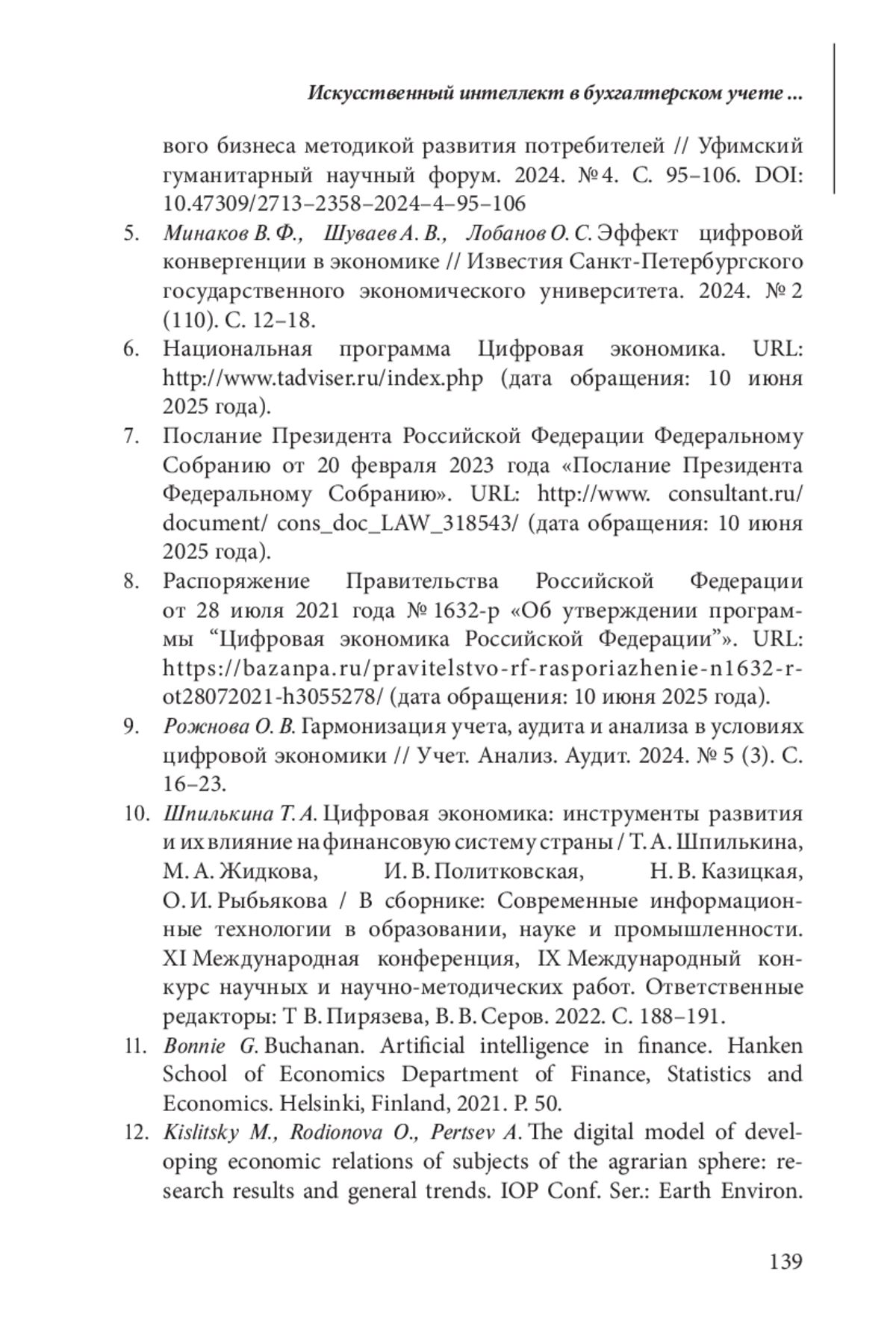 5. 	МинаковВ. Ф., Шуваев А. В., Лобанов О. С. Эффект цифровой конвергенции в экономике // Известия Санкт-Петербургского государственного экономического университета. 2024. № 2 (110). С. 12-18.