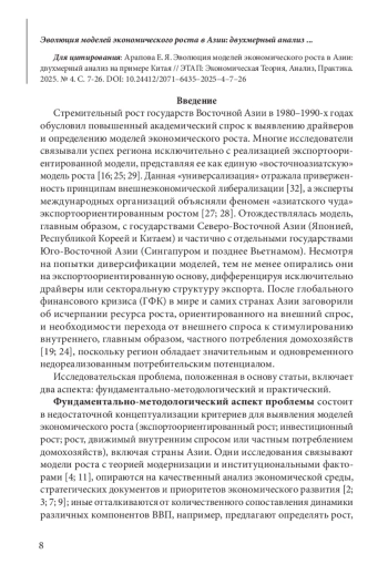 Cтремительный рост государств Восточной Азии в 1980–1990-х годах обусловил повышенный академический спрос к выявлению драйверов и определению моделей экономического роста. Многие исследователи связывали успех региона исключительно с реализацией экспортоориентированной модели, представляя ее как единую «восточноазиатскую» модель роста [16; 25; 29].