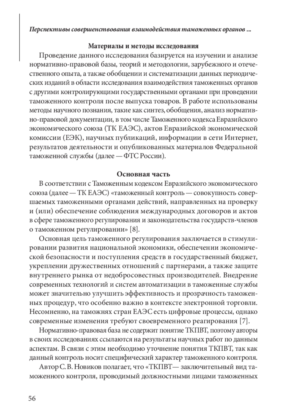 5. 	Новиков С. В. Совершенствование таможенного контроля после выпуска товаров в системе предоставления таможенных услуг: дисс. … канд. экон. наук. 08.00.05. Люберцы, 2019. С. 52.