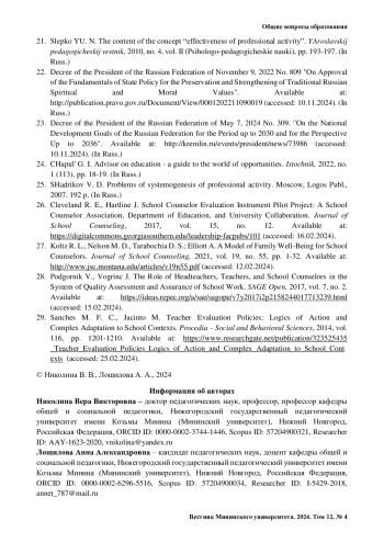 28. Podgornik V., Vogrinc J. The Role of Headteachers, Teachers, and School Counselors in the System of Quality Assessment and Assurance of School Work // SAGE Open. 2017. Vol. 7, no. 2. Available at: https://ideas.repec.org/a/sae/sagope/v7y2017i2p2158244017713239.html (accessed: 15.02.2024).