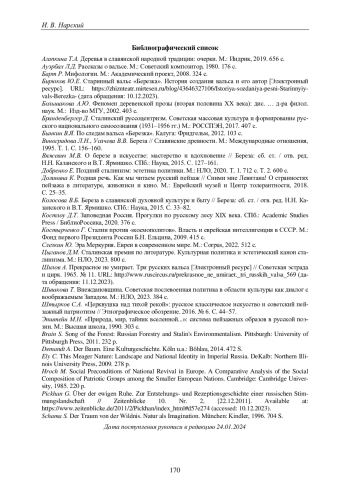 9. Вяжевич М.В. О березе в искусстве: мастерство и вдохновение // Береза: сб. ст. / отв. ред. Н.Н. Казанского и В.Т. Ярмишко. СПб.: Наука, 2015. С. 127-161. EDN: UYICZZ