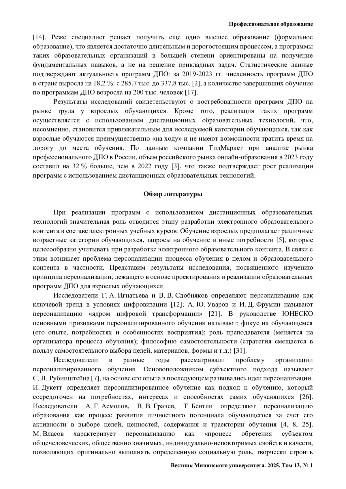12. Игнатьева Г. А., Сдобняков В. В. Проектирование персонализированного дополнительного профессионального образования педагогов: событийно-позиционная методология // Вестник Мининского университета. 2022. Т. 10, № 3. URL: https://www.minin-vestnik.ru/jour/article/view/1374 (дата обращения: 13.11.2024).