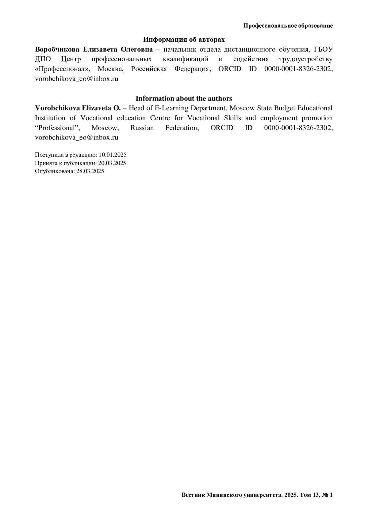 5. Вайндорф-Сысоева М. Е., Воробчикова, Е. О. Организация запросно-ориентированного обучения взрослых // Проблемы современного педагогического образования: сборник научных трудов. Ялта: РИО ГПА, 2024. Вып. 82, ч. 1. С. 78-81.