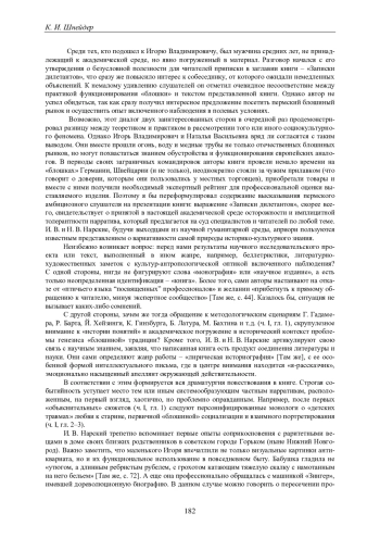 На примере анализа содержания, структуры, концептов монографии И. В. Нарского, посвященной хореографическому любительству в СССР, рассматривается одна из стратегий создания научных исследований с использованием методов и приемов «культурной истории». И. В. Нарский в своей работе рисует художественную самодеятельность, задуманную как успешный государственный проект, но одновременно ставшую важной составляющей досуга советских людей нескольких поколений, практик их самореализации, выстраивания собственных «миров своих». Такой подход обусловил использование историком не только источников официального происхождения и материалов специализированных печатных изданий, но и широкое привлечение в работе материалов инициативного документирования, а также воспоминаний о собственном советском опыте участия в художественной самодеятельности. Хотя работа четко делится на три части - по количеству «акторов» создания и реализации государственного проекта (государство, профессиональные хореографы, самодеятельность), внутри каждой из частей ткань повествования оказывается выстроенной сложнее. В них отдельные источники становятся точками, от которых отталкиваются многочисленные отдельные сюжеты, перебиваемые лирическими отступлениями с личными воспоминаниями автора. Столь же разнообразен и арсенал используемых автором концептов, проговариваемых и не проговариваемых специально - от теории «плодотворного браконьерства» Мишеля де Серто и теории бриколажа Клода Леви-Стросса до примет концепта «вненаходимости» Алексея Юрчака. Используемые И. В. Нарским исследовательские и повествовательные стратегии представляют собой оригинальный, плодотворный и интересный опыт создания работы в рамках историко-культурной парадигмы, который, безусловно, далеко не исчерпывает все возможности последней.