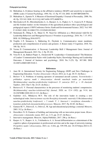 16. Слепко Ю. Н. Психологическое содержание и динамика целей учебной деятельности студентов педагогического вуза // Психологическая наука и образование. 2022. Т. 27, № 2. С. 69-81. https://doi.org/10.17759/pse.2022270206.