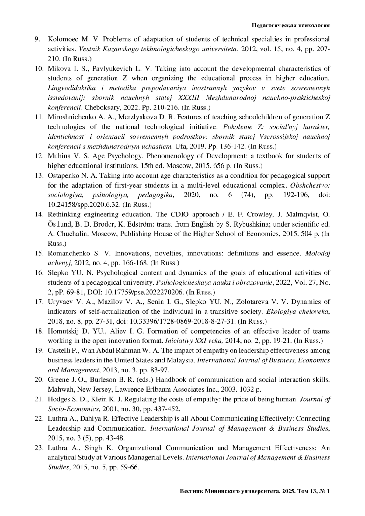 10. Микова И. С., Павлюкевич Л. В. Учет особенностей развития студентов поколения Z при организации учебного процесса в высшей школе // Лингводидактика и методика преподавания иностранных языков в свете современных исследований: сборник научных статей XXXIII Международной научно-практической конференции. Чебоксары, 2022. С. 210-216.