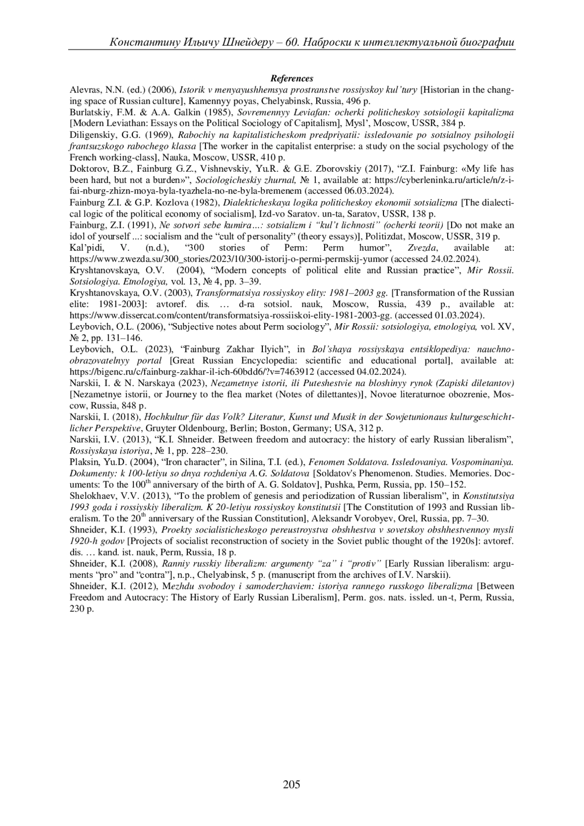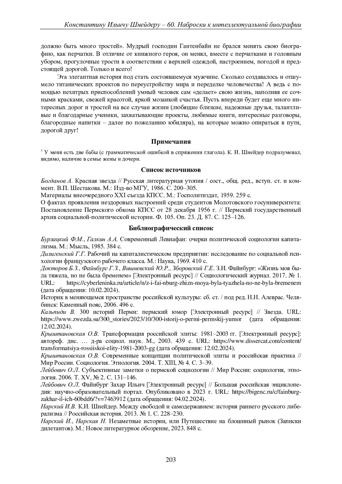 8. 	Лейбович О.Л. Субъективные заметки о пермской социологии // Мир России: социология, этнология. 2006. Т. XV, № 2. С. 131-146. EDN: HTDFFZ