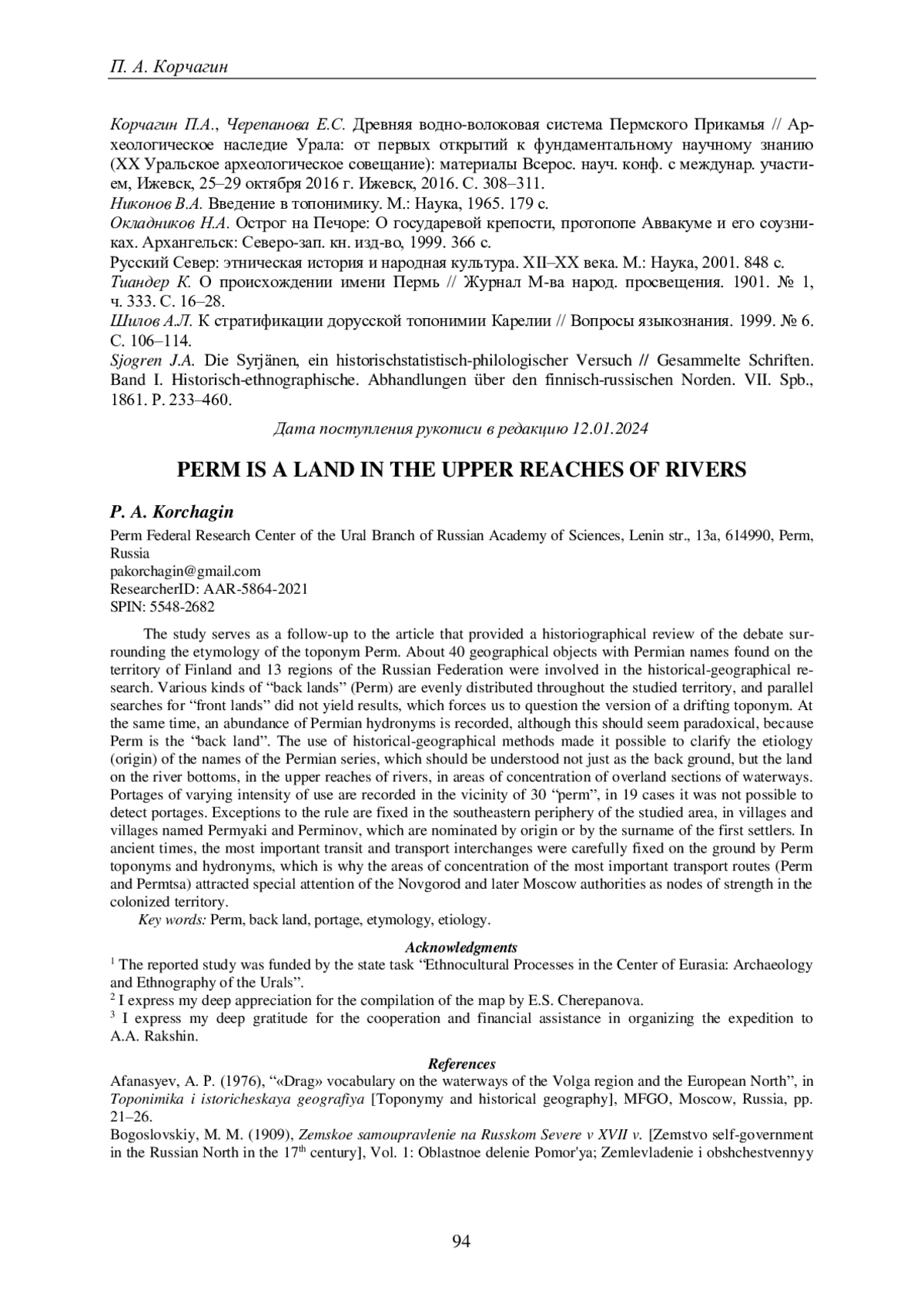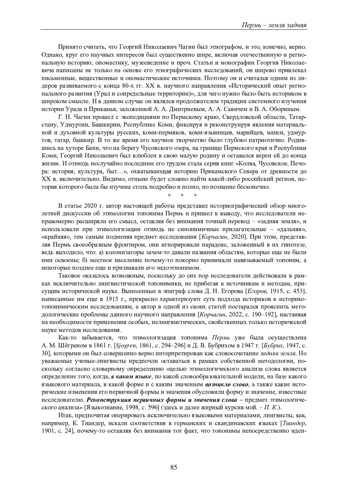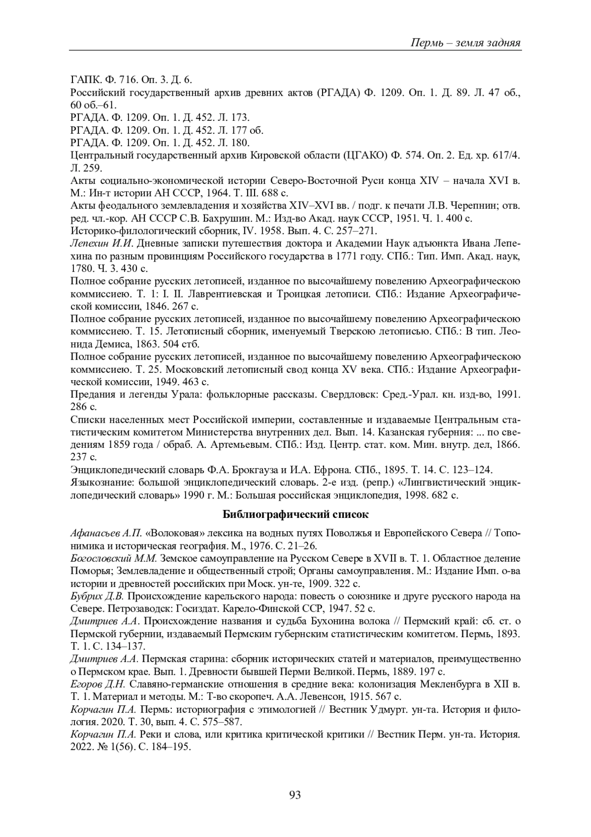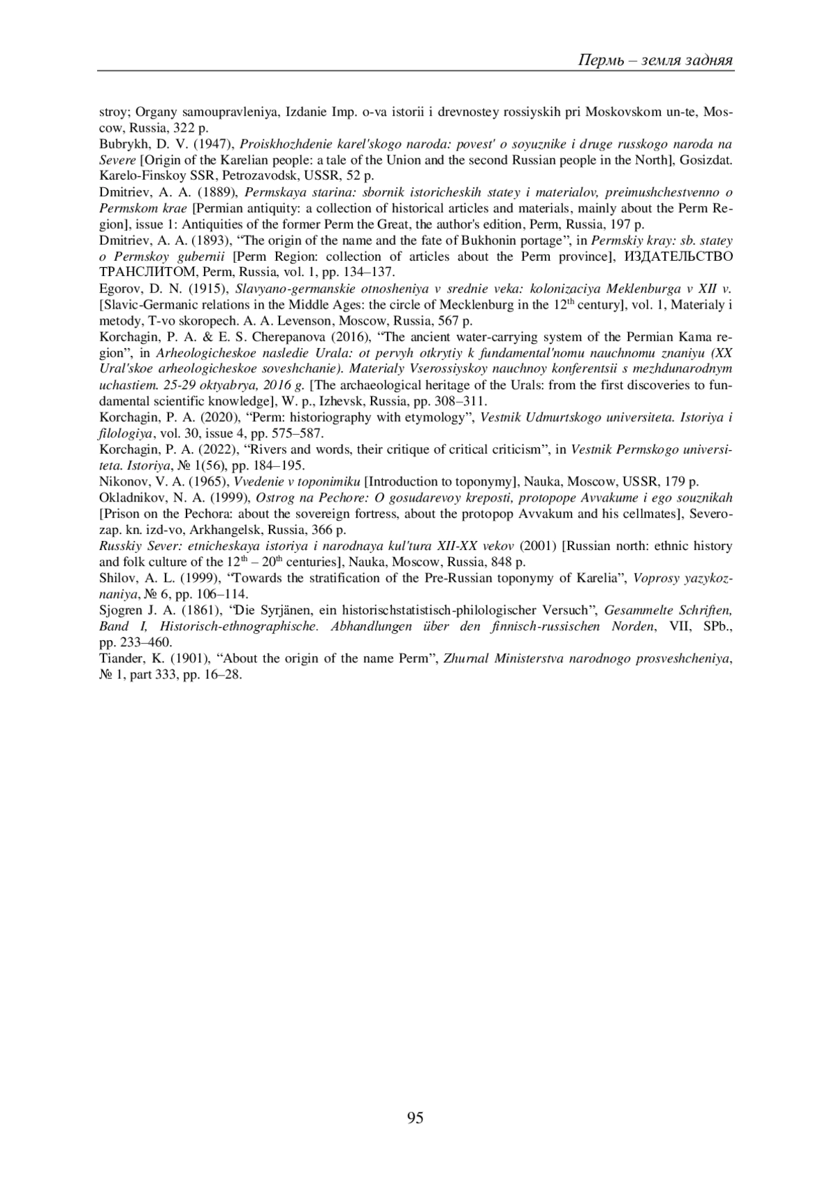7. Корчагин П.А. Пермь: историография с этимологией // Вестник Удмурт. ун-та. История и филология. 2020. Т. 30, вып. 4. С. 575-587. EDN: WOIBRP