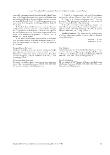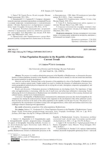 2. 	Закиров И. В. Тенденции урбанизационных процессов в Республике Башкортостан // Геосфера. Современные проблемы естественных наук: сборник статей Всероссийской научно-практической конференции, 2022, вып. 15, с. 156-159. EDN: WNLDYF