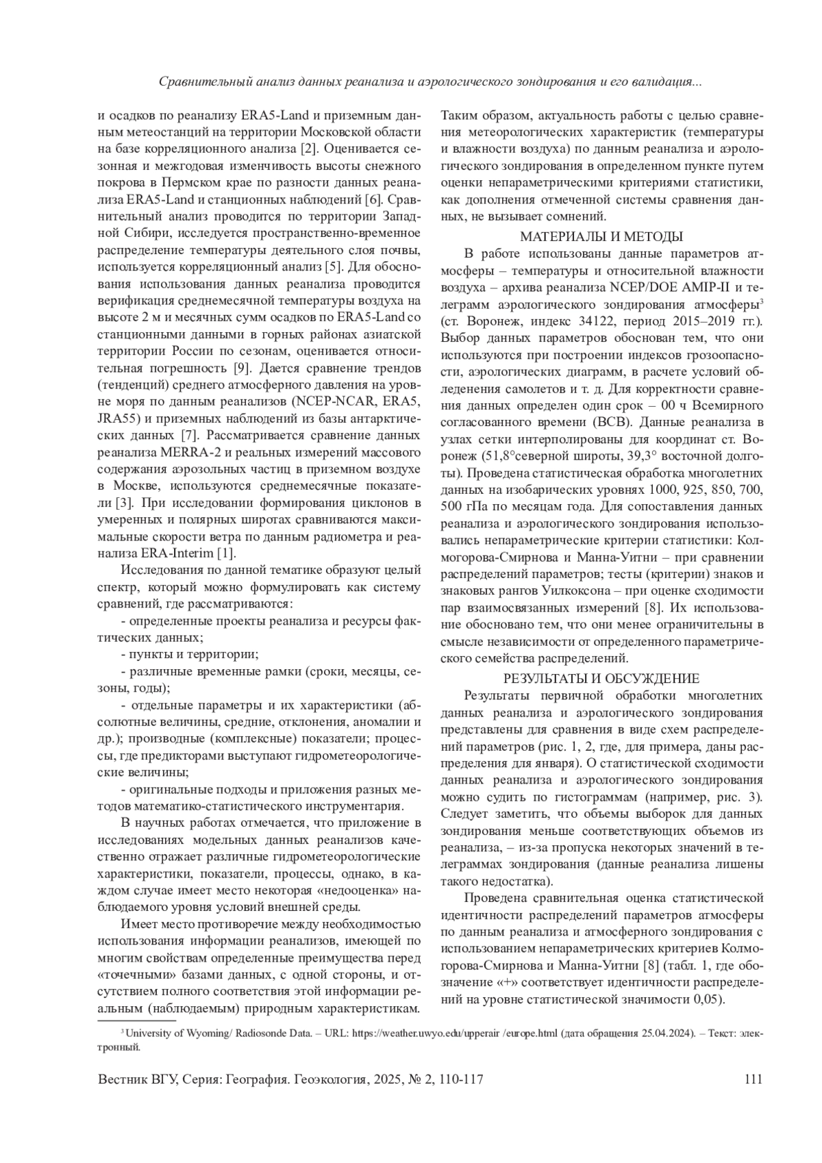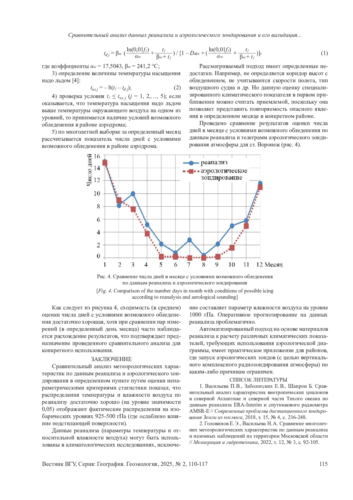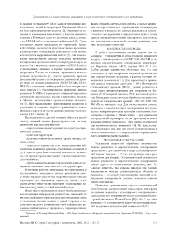 2. Головинов Е. Э., Васильева Н. А. Сравнение многолетних метеорологических характеристик по данным реанализа и наземных наблюдений на территории Московской области //Мелиорация и гидротехника, 2022, т. 12, № 3, с. 92-105. EDN: IHSYIN