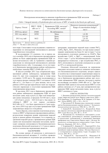 3. Капков В. И., Беленикина О. А., Федоров В. Д. Влияние тяжелых металлов на морской фитопланктон // Вестник ВМУ. Серия Биология, 2011, № 1, с. 41-45.