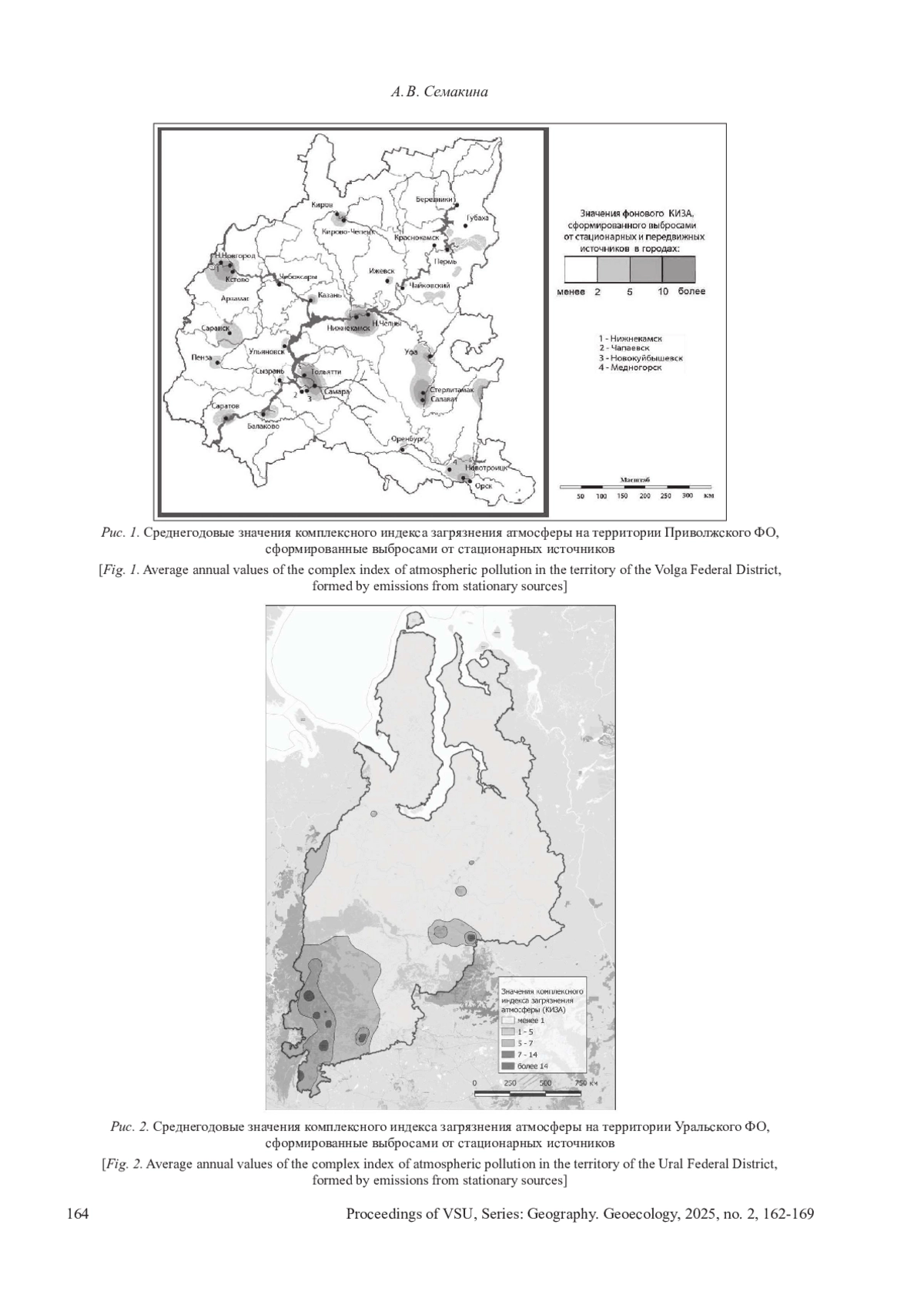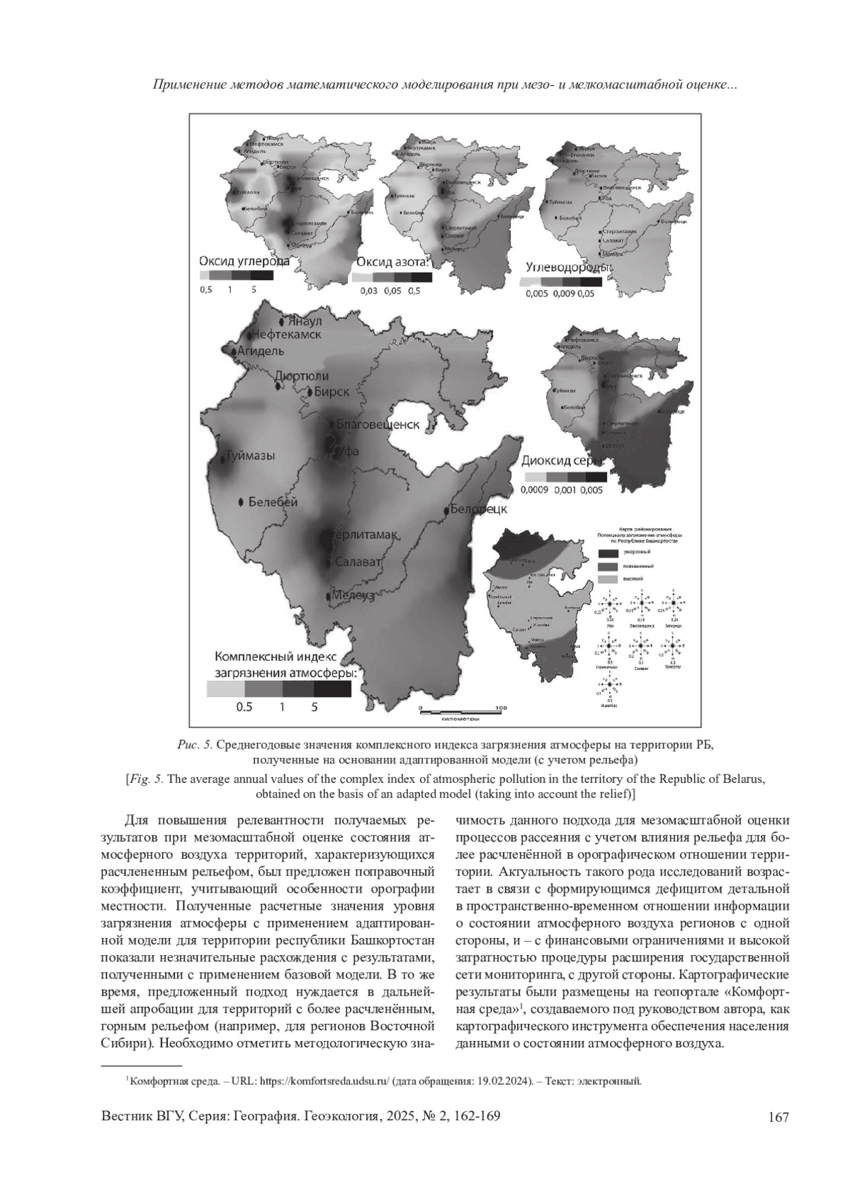 В рамках данного исследования была применена методика, предложенная В. А. Петрухиным и В. А. Вишенским [14]. Расчет концентраций основных поллютантов был выполнен для территорий Приволжского и Уральского федерального округов, республик Башкортостан и Удмуртия. Шаг расчетной сетки составил 10 км. Размер шага определялся как техническими возможностями ПК, так и необходимостью при повышении детальности учета условий эмиссии и особенностей подстилающей поверхности.