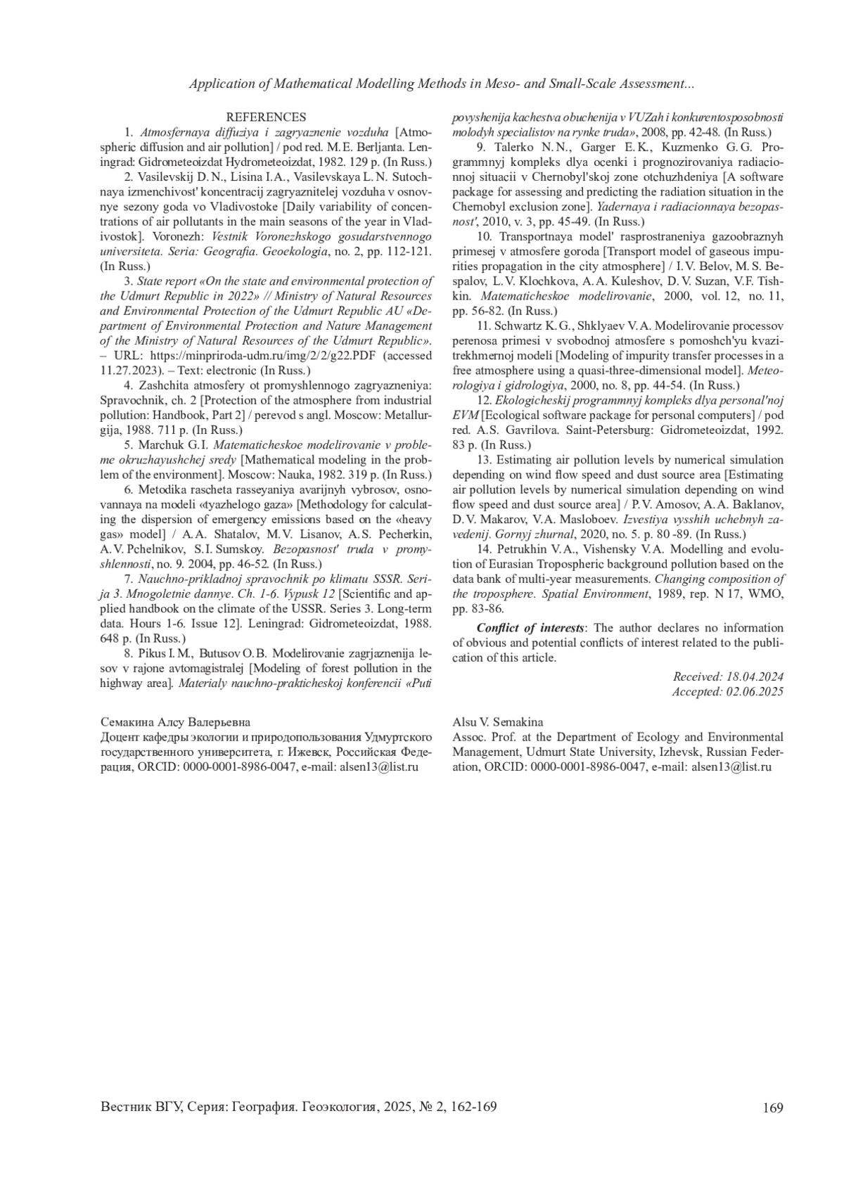 2. Василевский Д. Н., Лисина И.А., Василевская Л. Н. Суточная изменчивость концентраций загрязнителей воздуха в основные сезоны года во Владивостоке // Вестник Воронежского государственного университета. Серия: География. Геоэкология, 2023, № 2, с. 112-121. EDN: FOHVRY