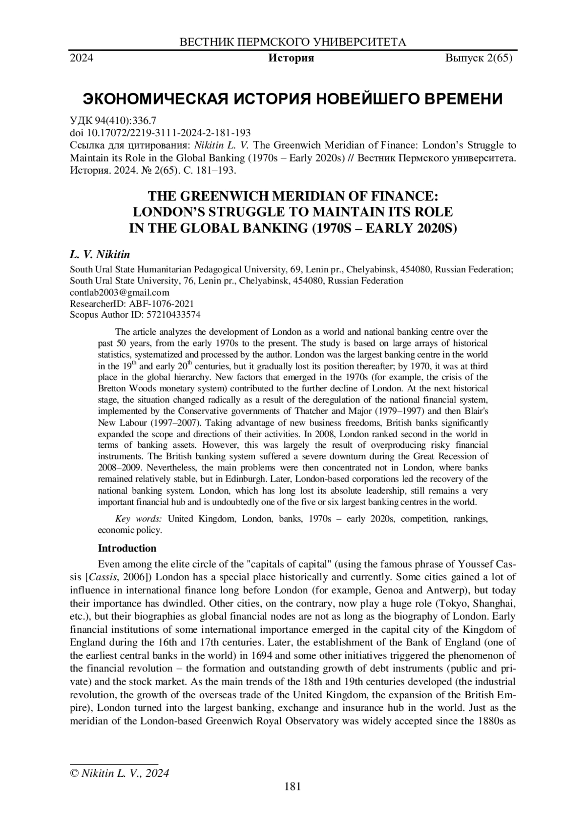 3. Никитин Л.В. Финансовые бури на Тихом океане: соперничество США и Японии в банковской сфере (1970-2020 годы) // Вестник Пермского университета. История. 2022. № 4 (59). С. 51-61. EDN: KQCCNP