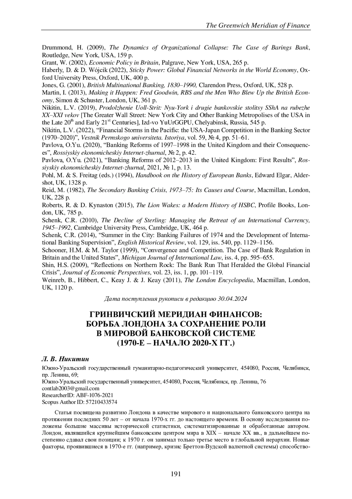 2. Никитин Л.В. Продолжение Уолл-стрит: Нью-Йорк и другие банковские столицы США на рубеже XX-XXI веков. Челябинск: Изд-во ЮУрГГПУ, 2019. 545 с. EDN: TDEQFA