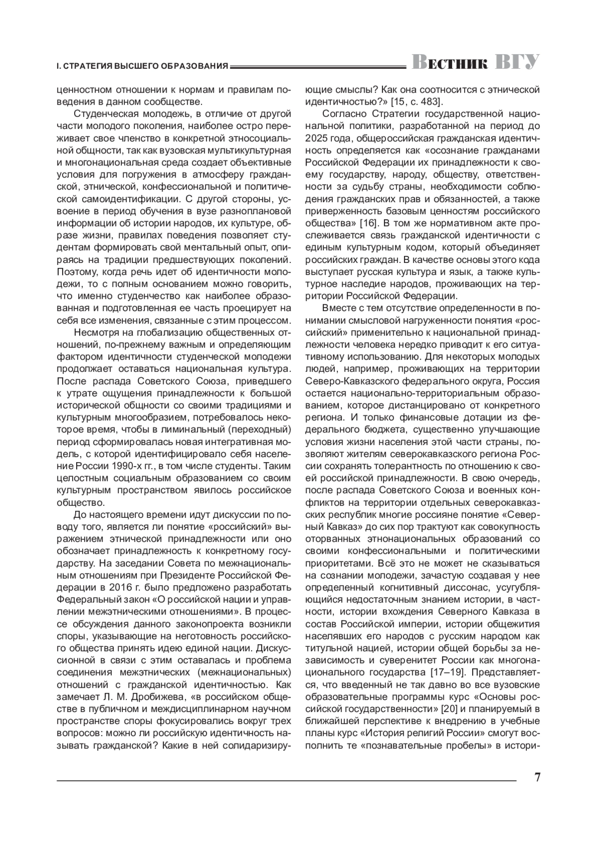 15. 	Дробижева Л. М. Смыслы общероссийской гражданской идентичности в массовом сознании россиян / Л. М. Дробижева // Мониторинг общественного мнения: экономические и социальные перемены. - 2020. - № 4. - С. 480-498. EDN: HAAHUW