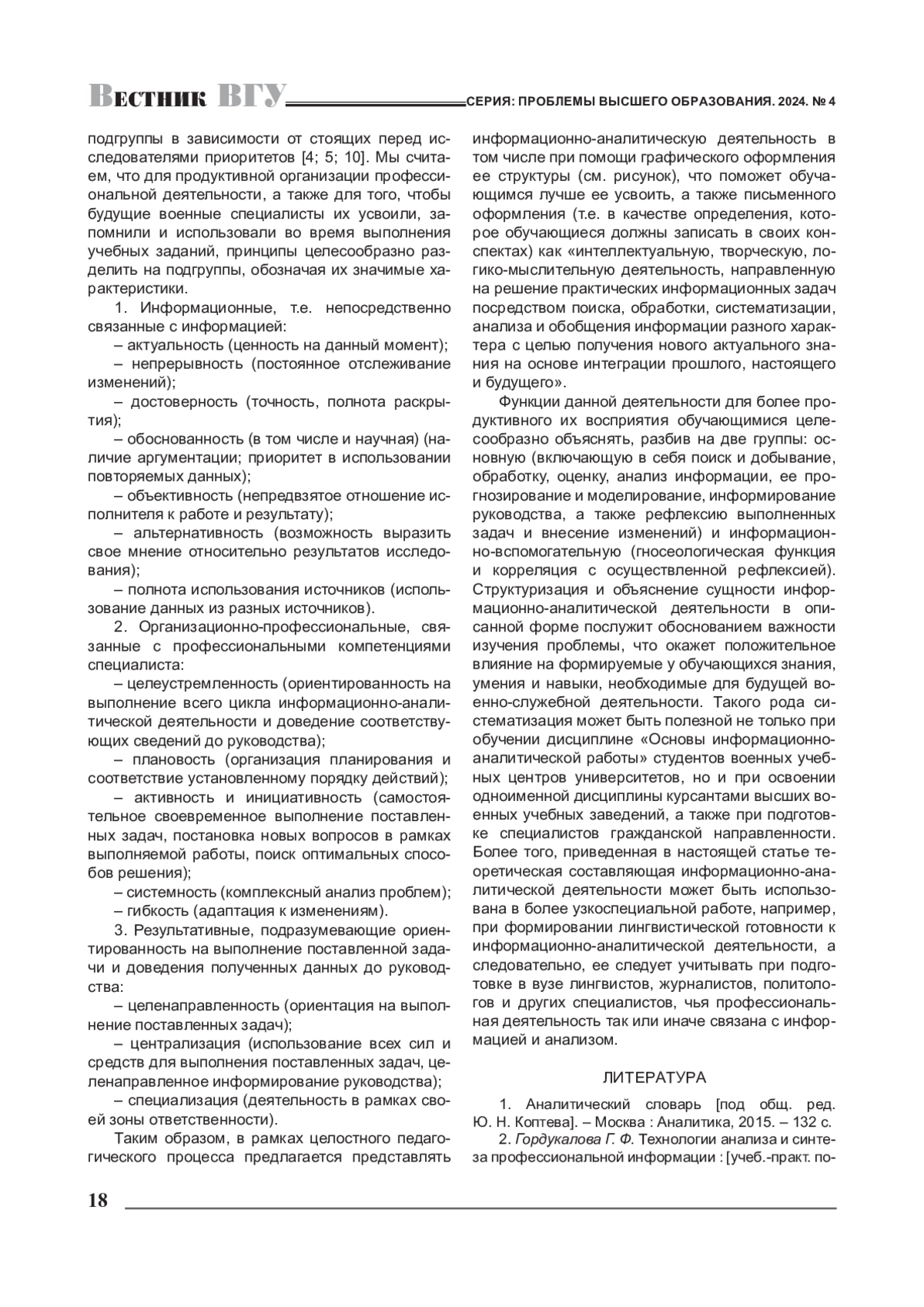 2. 	Гордукалова Г Ф. Технологии анализа и синтеза профессиональной информации: [учеб.-практ. пособие] / Г. Ф. Гордукалова. - Санкт-Петербург: Профессия, 2015. - 543 с.