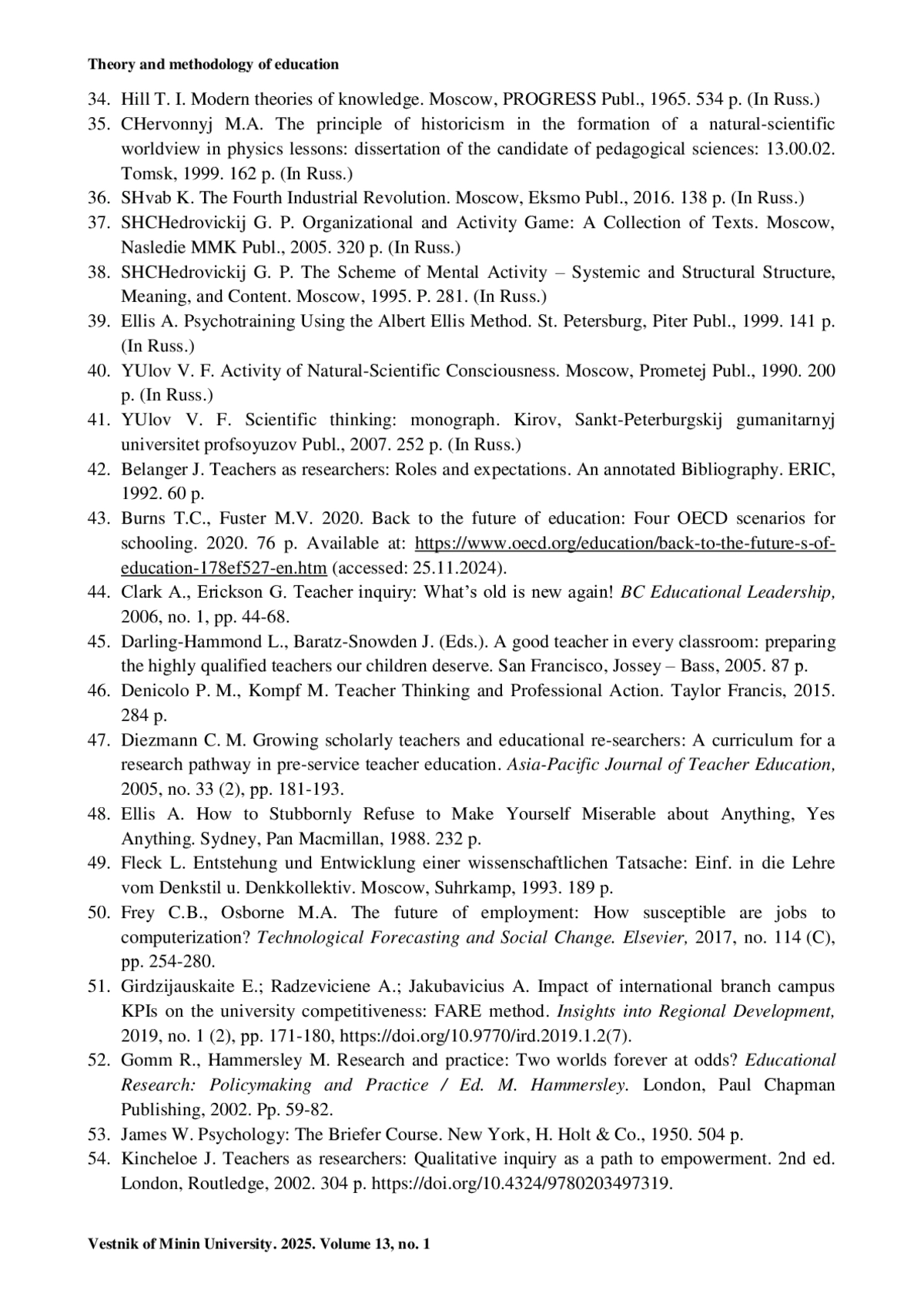 47. Diezmann C. M. Growing scholarly teachers and educational re-searchers: A curriculum for a research pathway in pre-service teacher education // Asia-Pacific Journal of Teacher Education. 2005. No. 33 (2). Рр. 181-193.