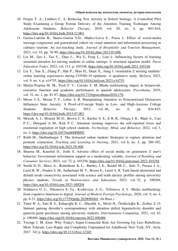 10. Fergus T. A., Limbers C. A. Reducing Test Anxiety in School Settings: A Controlled Pilot Study Examining a Group Format Delivery of the Attention Training Technique Among Adolescent Students // Behavior Therapy. 2019. Vol. 50, no. 4. Pp. 803-816. https://doi.org/10.1016/j.beth.2018.12.001.