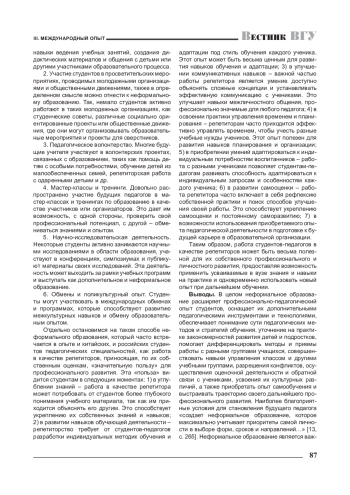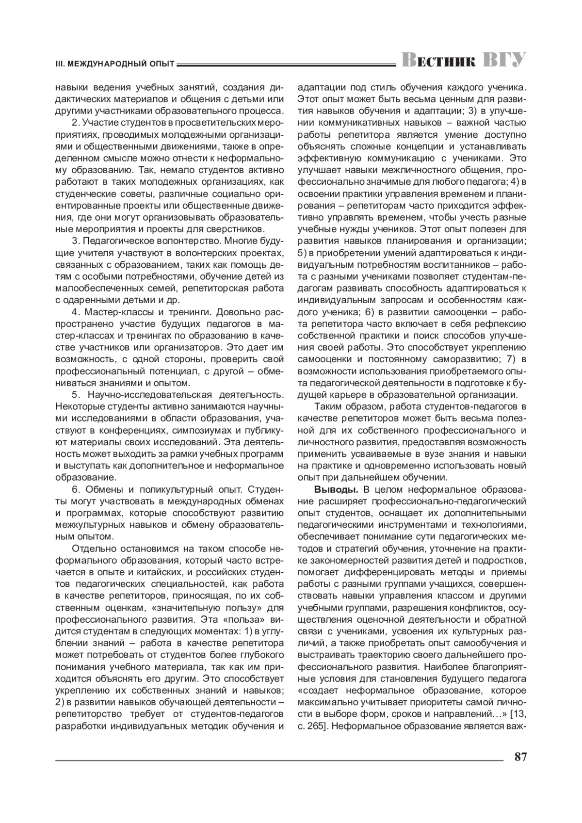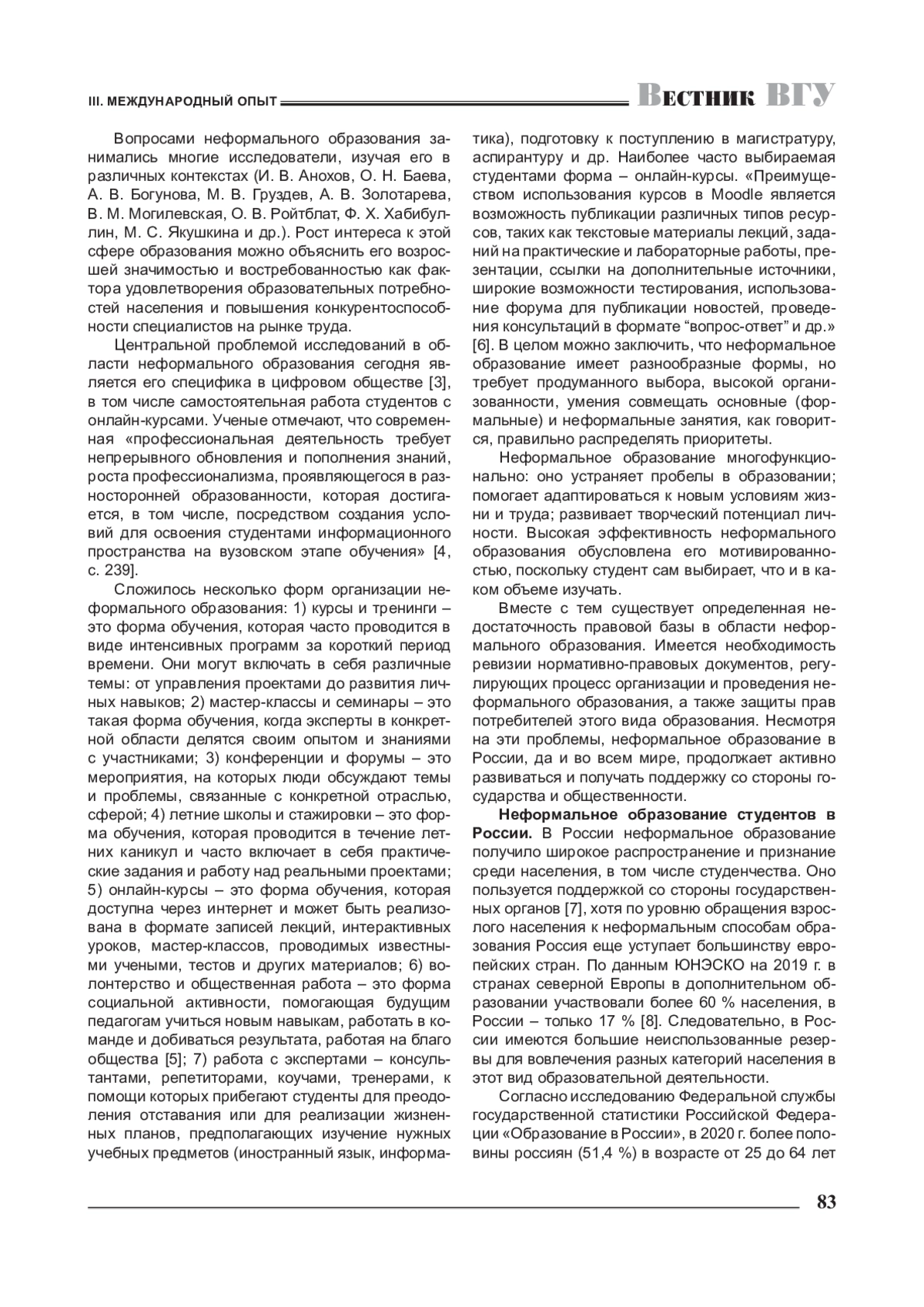 8. 	Кичерова М. Н. Неформальное образование: международный опыт признания компетенций / М. Н. Кичерова, Е. В. Зюбан, Е. О. Муслимова // Вопросы образования. - 2020. - № 1. - С.126-158.