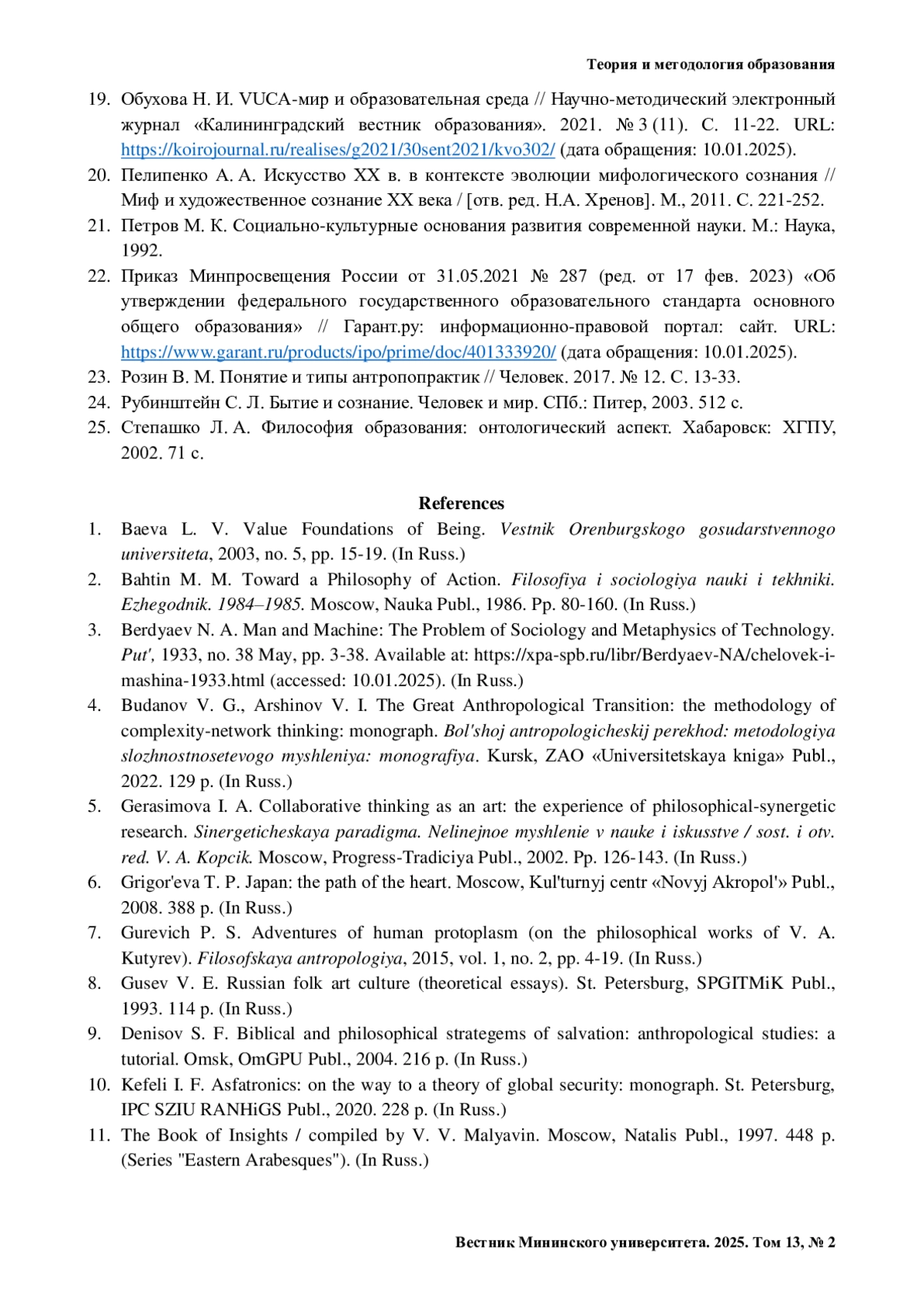 16. Лескова И. А. Идея образования: структура и содержание в контексте смены философских оснований // Вестник Мининского университета. 2021. Т. 9, № 3 (36). https://doi.org/10.26795/2307-1281-2021-9-3-10.