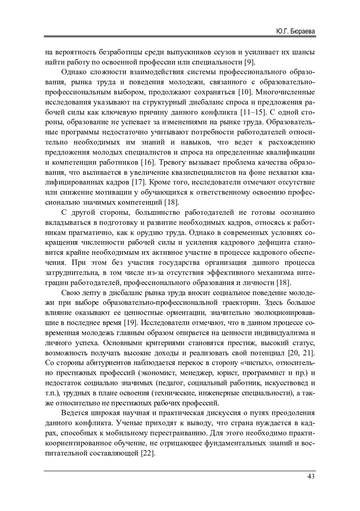 22. 	Пронина, Е.И. Образование и рынок труда / Е.И. Пронина // Социологические исследования. - 2023. - № 7. - С. 158-161.  EDN: ADYWTC