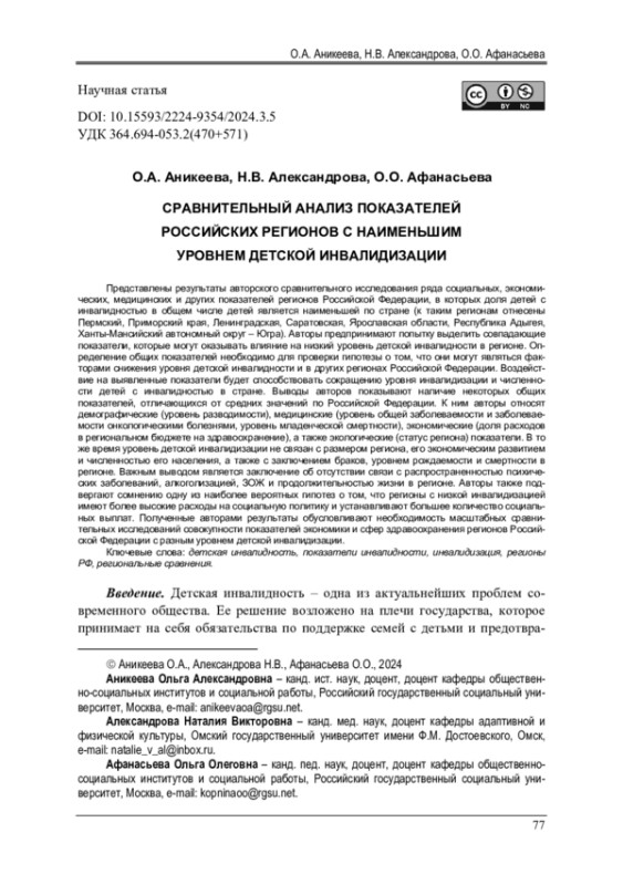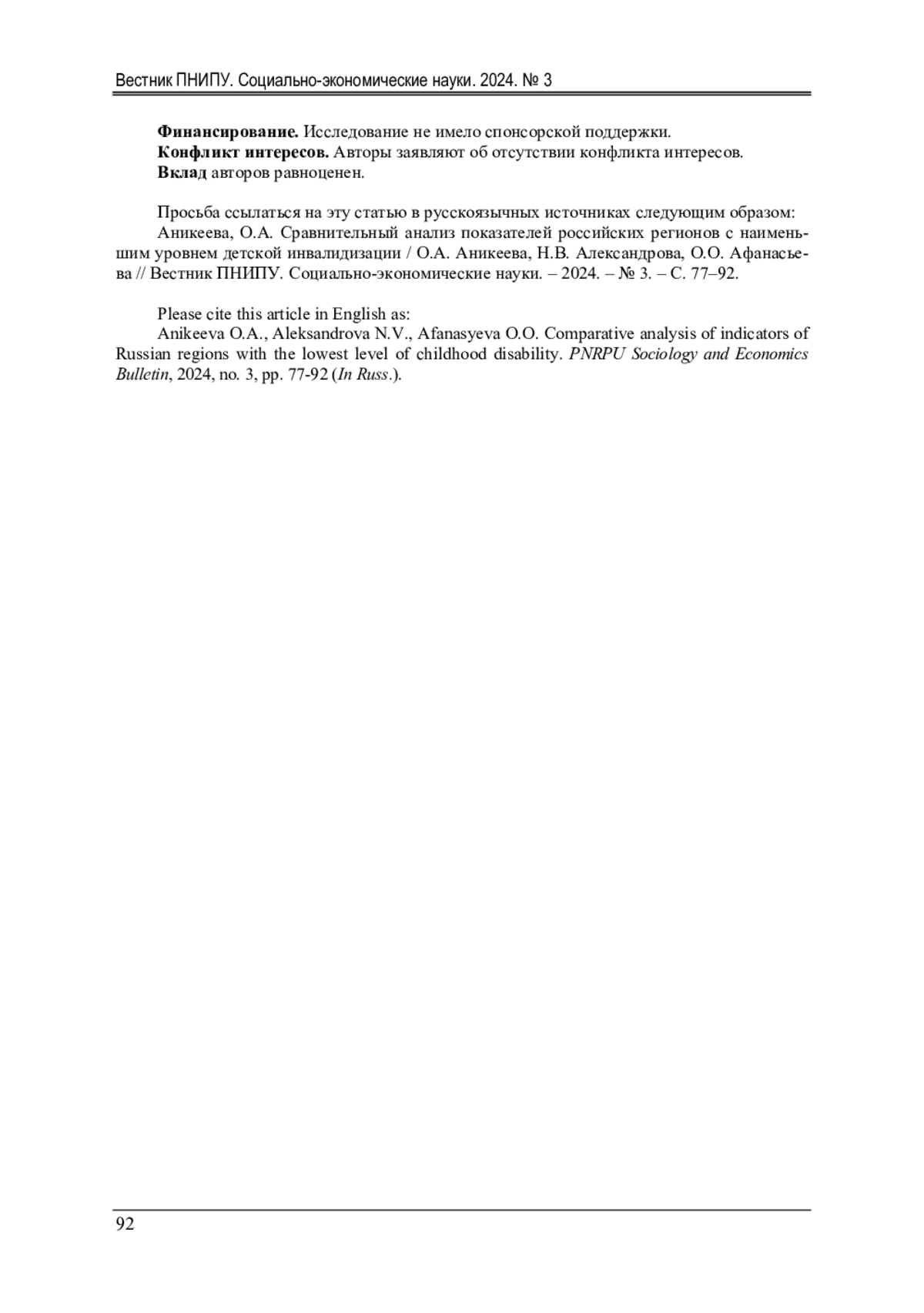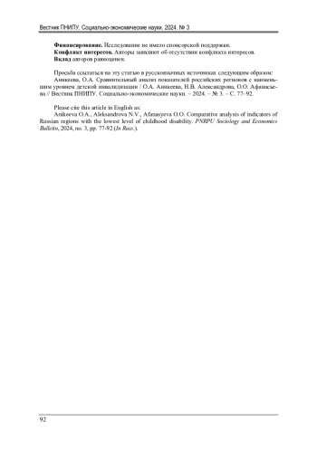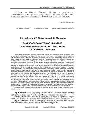 2. Карпунина, А.В. Положение детей-инвалидов в неблагополучных семьях: социологический анализ / А.В. Карпунина // Вестник Московского университета Сер. 18. Социология и политология. - 2022. - № 28 (4). - С. 180-201. DOI: 10.24290/1029-3736-2022-28-4-180-201 EDN: CTTSSV