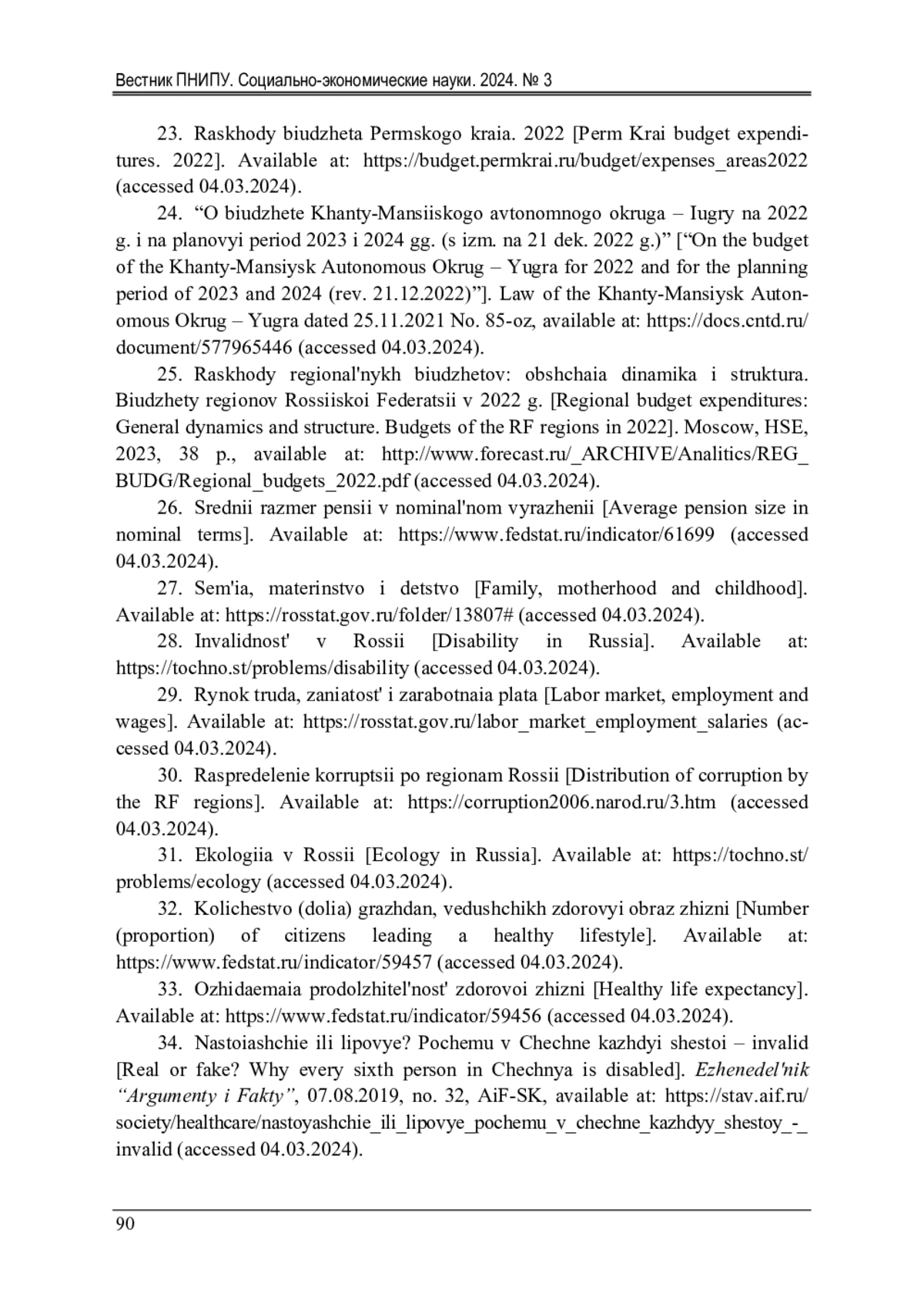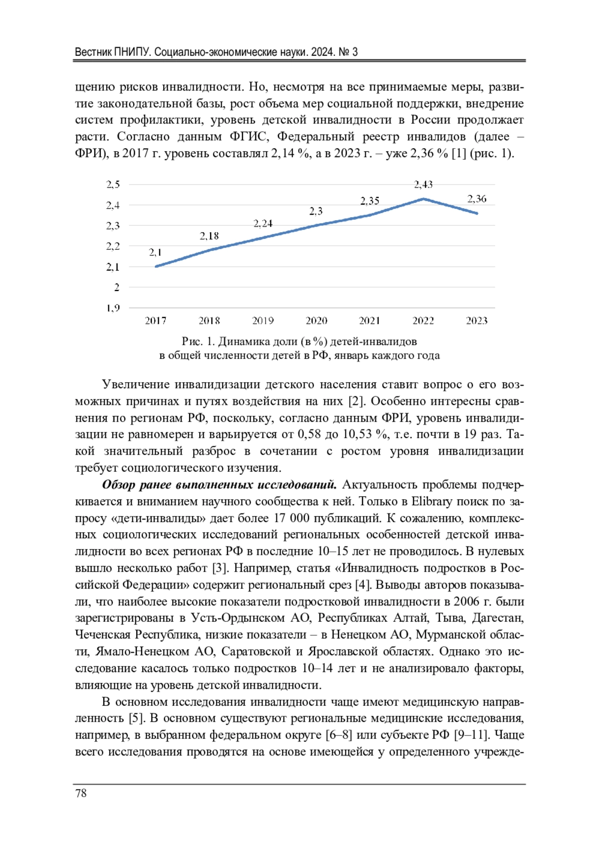 10. Нацун, Л.Н. Особенности инвалидности населения Вологодской области в 2017-2021 гг. / Л.Н. Нацун // Проблемы развития территории. - 2022. - Т. 26, № 1. - С. 93-109. DOI: 10.15838/ptd.2022.1.117.7 EDN: DHGZAR