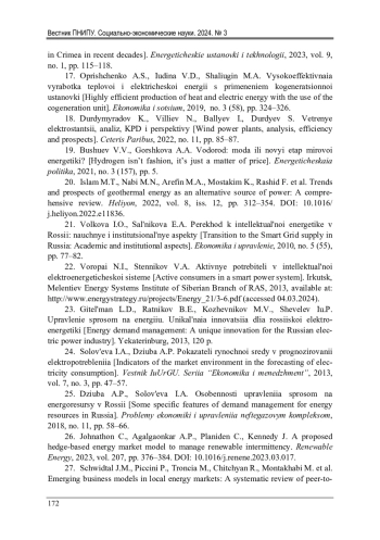 21. Волкова, И.О. Переход к интеллектуальной энергетике в России: научные и институциональные аспекты / И.О. Волкова, Е.А. Сальникова // Экономика и управление. - 2010. - № 5 (55). - С. 77-82.