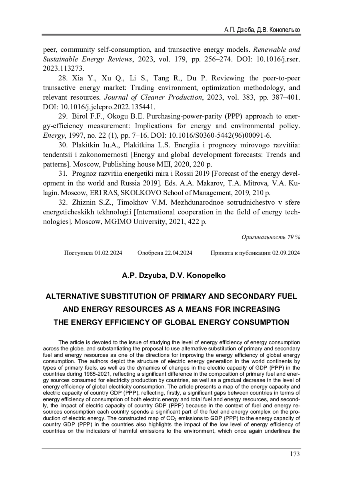 29. Birol, F. Purchasing-Power-Parity (PPP) approach to energy-efficiency measurement: Implications for energy and environmental policy / F. Birol, B.E. Okogu // Energy. - 1997. - № 22 (1). - P. 7-16. DOI: 10.1016/S0360-5442(96)00091-6 EDN: AIUQHX
