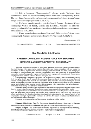 23. 	Как в концерне “Росэнергоатом” работает сервис “карьерное консультирование” [Электронный ресурс]. - URL: https://up-pro.ru/library/personnel_management/workforce_strategy/karyernoye-konsultirovaniye/(дата обращения: 15.02.2024).