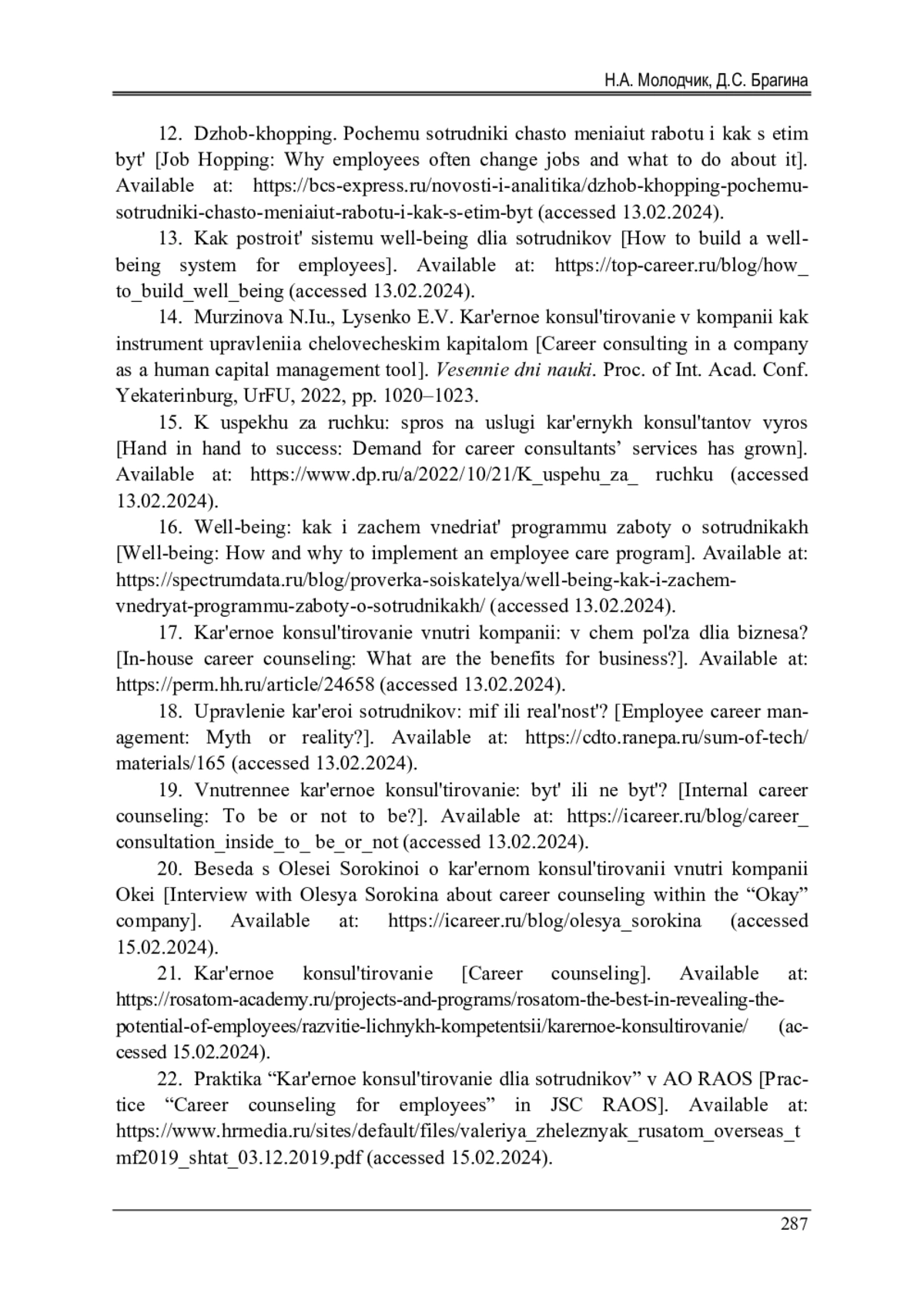 22. 	Практика “Карьерное консультирование для сотрудников” в АО РАОС [Электронный ресурс]. - URL: https://www.hrmedia.ru/sites/default/files/valeriya_zheleznyak_rusatom_overseas_tmf2019_shtat_03.12.2019.pdf (дата обращения: 15.02.2024).