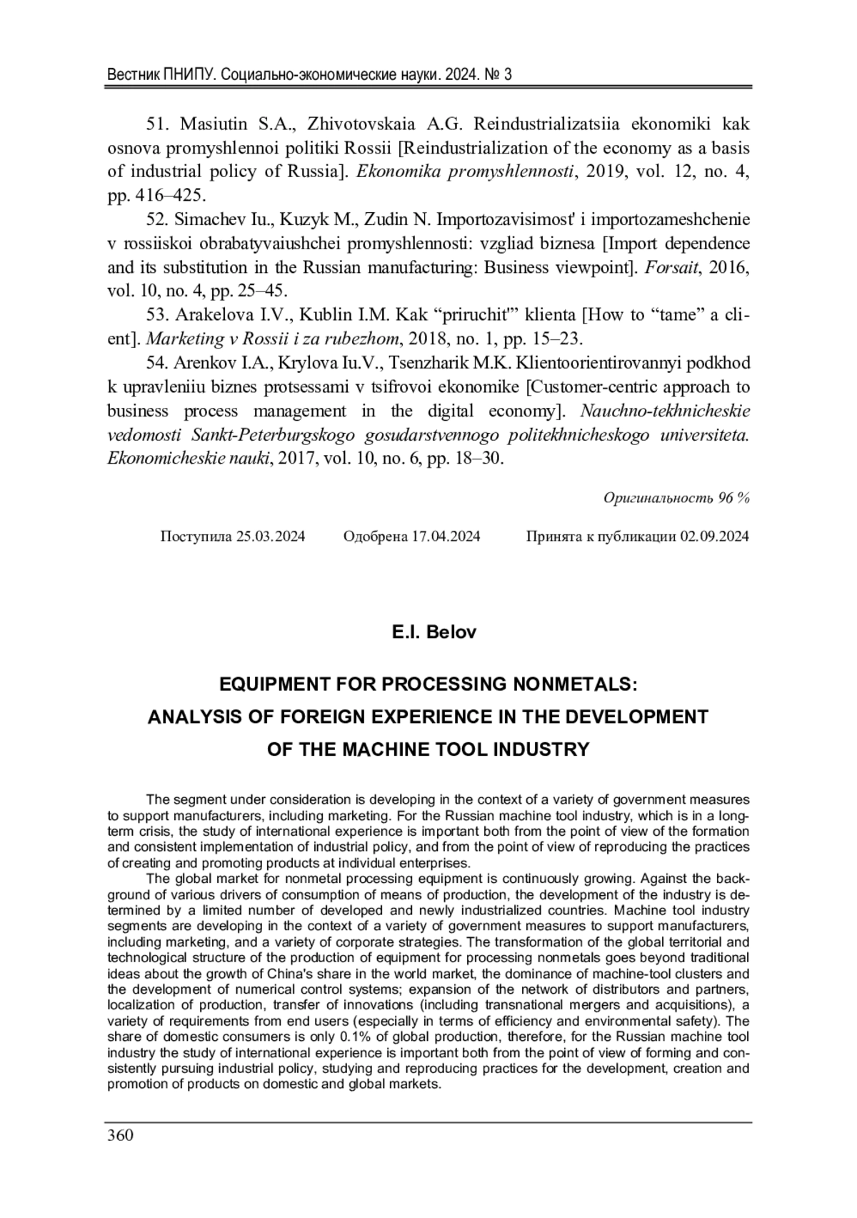 51. Масютин, С.А. Реиндустриализация экономики как основа промышленной политики России / С.А. Масютин, А.Г. Животовская // Экономика промышленности. - 2019. - Т. 12, № 4. - С. 416-425. EDN: KLLLCM