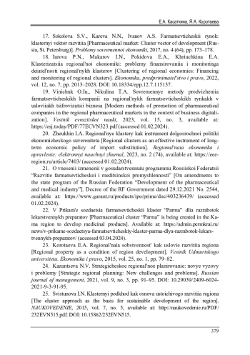 22. 	В Прикамье создается фармацевтический кластер “Парма” для разработок лекарственных препаратов // Официальный интернет-портал региона. Сайт губернатора и Правительства Пермского края. - 9 ноября 2022. - URL: https://admin.permkrai.ru/news/v-prikame-sozdaetsya-farmatsevticheskiy-klaster-parma-dlya-razrabotok-lekarstvennykh-preparatov/(дата обращения: 03.04.2024).