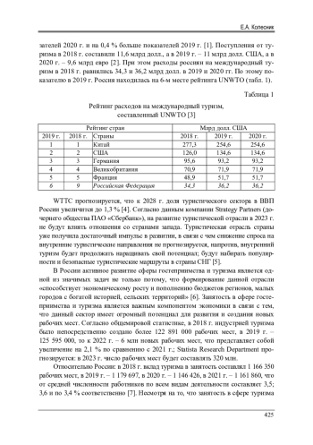 3. 	UNWTO World Tourism Barometer [Электронный ресурс] // Statistical annex. - 2021. - Vol. 19, iss. 3. - URL: https://www.wto.org/english/tratop_e/envir_e/unwto_barom21.pdf (accessed 10 February 2024).