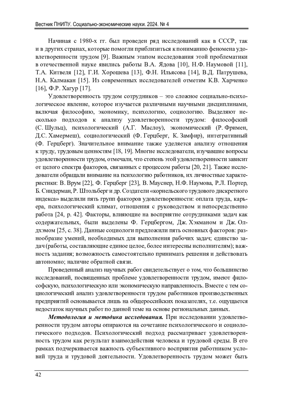 17. Хагур, Ф.Р. Исследования проблемы удовлетворенности трудом в СССР и постсоветской России / Ф.Р. Хагур // Вестник Пермского университета. Философия. Психология. Социология. - 2015. - № 1 (21). - С. 102-109. EDN: TQSQRX
