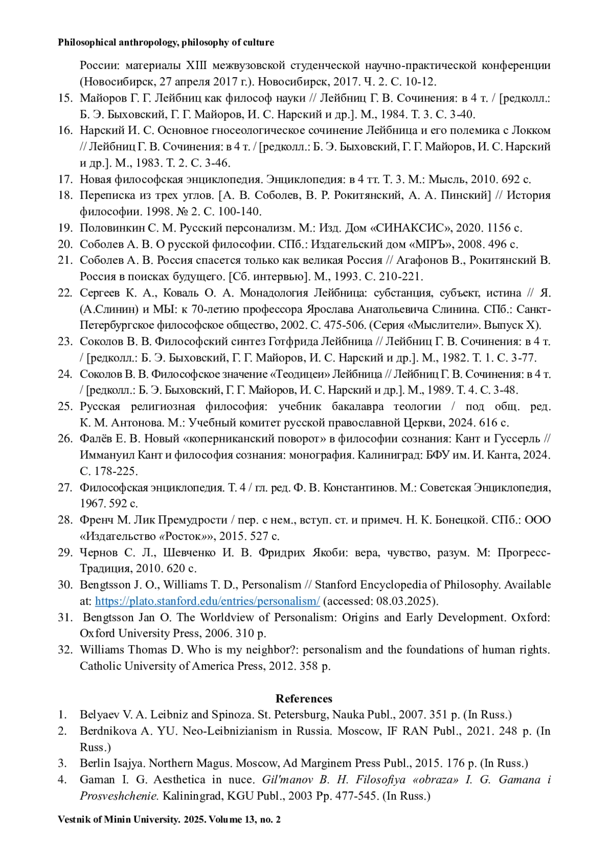 30. Bengtsson J. O., Williams T. D., Personalism // Stanford Encyclopedia of Philosophy. Available at: https://plato.stanford.edu/entries/personalism (accessed: 08.03.2025).