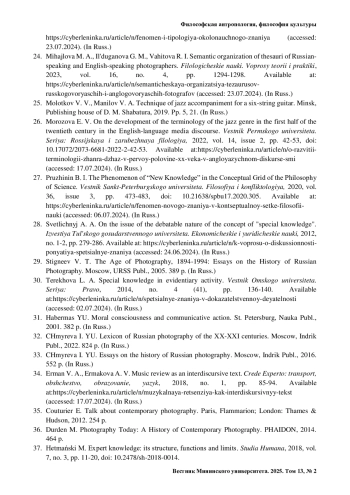 18. Красикова К. В. Фотография как часть медиакультуры // Вестник Томского государственного университета. Серия: Культурология и искусствоведение. 2022. № 46. С. 83-99. https://doi.org/10.17223/22220836/46/7. URL: https://cyberleninka.ru/article/n/fotografiya-kak-chast-mediakultury (дата обращения: 17.07.2024).