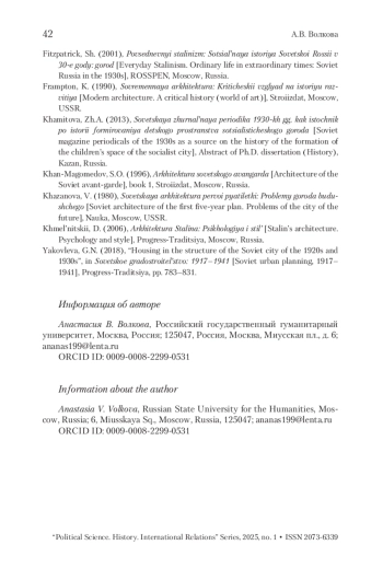 14. Конышева 2018c - Конышева Е.В. Восприятие западного опыта городского планирования и жилищного строительства в СССР: 1920-1930 гг.: эволюция задач и форм // Советское градостроительства: 1917-1941. М.: Прогресс-Традиция, 2018. С. 1071-1107.