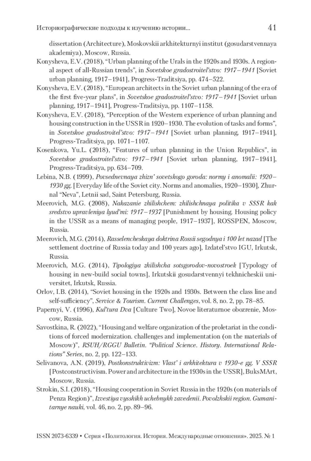 12. Конышева 2018a - Конышева Е.В. Градостроительство Урала 1920-1930-х гг.: региональный аспект общероссийских тенденций // Советское градостроительство: 1917-1941. М.: Прогресс-Традиция, 2018. С. 474-522.