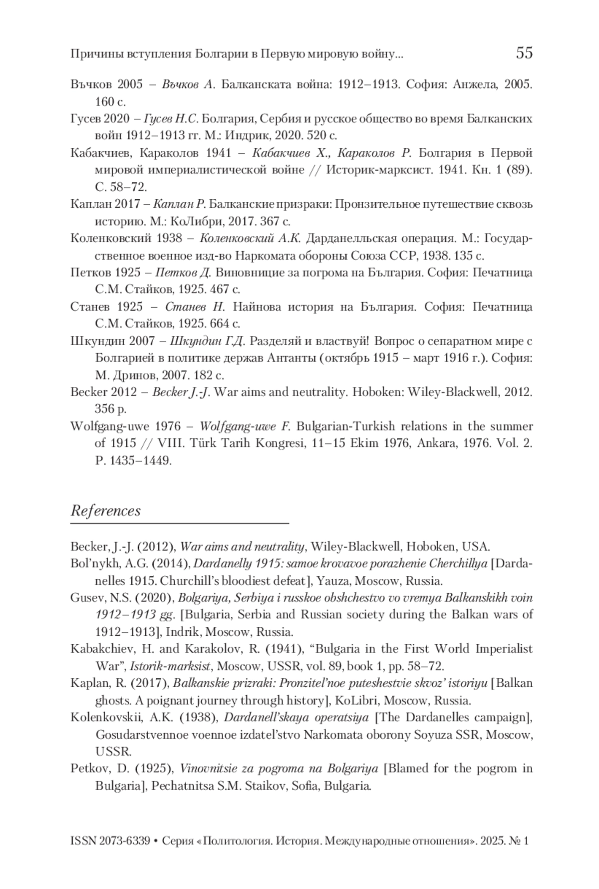 5. Кабакчиев, Караколов 1941 - Кабакчиев Х., Караколов Р. Болгария в Первой мировой империалистической войне // Историк-марксист. 1941. Кн. 1 (89). С. 58-72.