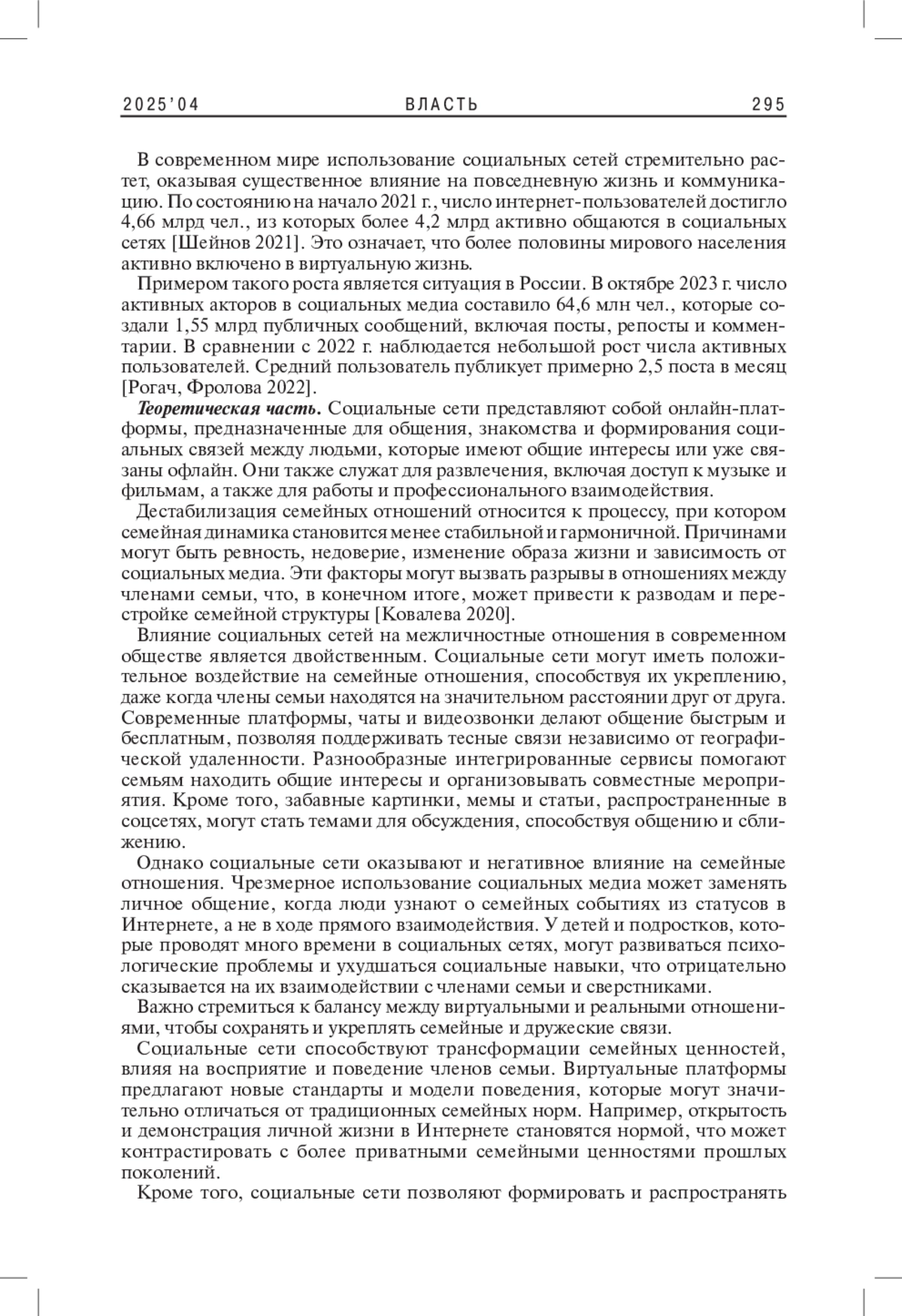 4. 	Шляков А.В. 2022. Новые формы семьи в сетевом обществе. - Теория и практика общественного развития. № 6 (172). С. 37-40. EDN: HEJUIE