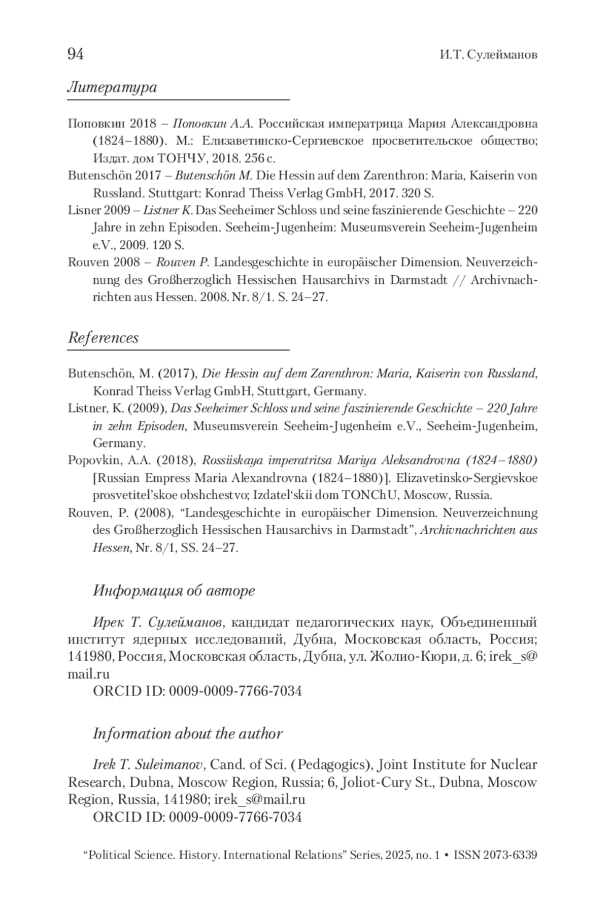 2. Butenschön 2017 - Butenschön M. Die Hessin auf dem Zarenthron: Maria, Kaiserin von Russland. Stuttgart: Konrad Theiss Verlag GmbH, 2017. 320 S.