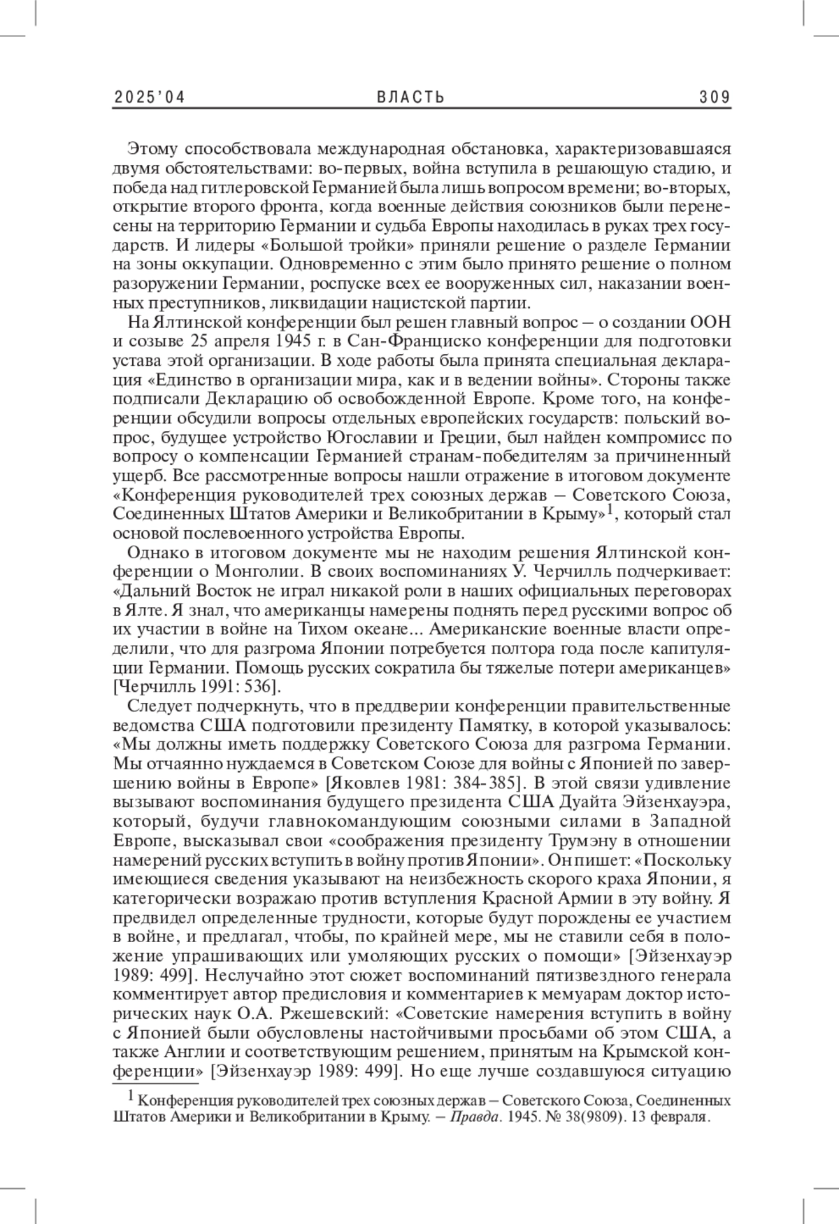 1. 	Бельянинов А.Ю., Смирнов С.К., Будченко Л.И., Кокорин С.Л., Назаров С.Д., Болдырев Ю.Ф., Заблоцкая А.Г., Назарова О.В., Евдокимова Т.В., Аргасцева С.А., Косовцева С.В., Самко С.М., Яковлева Л.Е., Котова И.В. 2020. К истории Ялтинской конференции руководителей СССР, США и Великобритании. - Современная научная мысль. № 1. С. 73-97. EDN: MAKVZR
