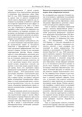 11. 	Пиньковецкая Ю.С. Возрастная структура педагогического персонала общеобразовательных школ в регионах России // Вестник Сургутского государственного педагогического университета. 2022. № 2(77). С. 99-112. DOI: 10.26105/SSPU.2022.77.2.003 EDN: LIVEQB