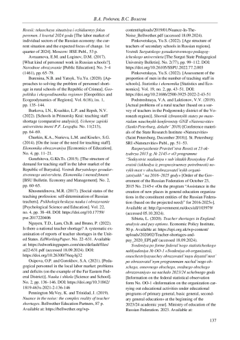 18. 	Nguyen T.D., Lam Ch.B., Bruno P. Is there a national teacher shortage? A systematic examination of reports of teacher shortages in the United States // EdWorkingPaper. 2022. No. 22-631. URL: https://edworkingpapers.com/sites/default/files/ai22-631.pdf (accessed: 18.09.2024). DOI: 10.26300/76eq-hj32